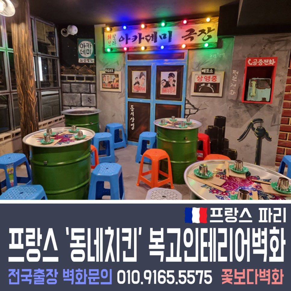 프랑스 파리 출장!! '동네치킨'에 그려진 한국식 복고인테리어 벽화/ 레트로, 복고풍벽화,꽃보다벽화