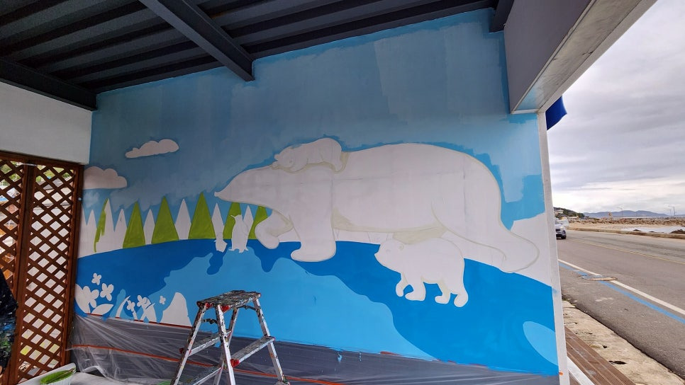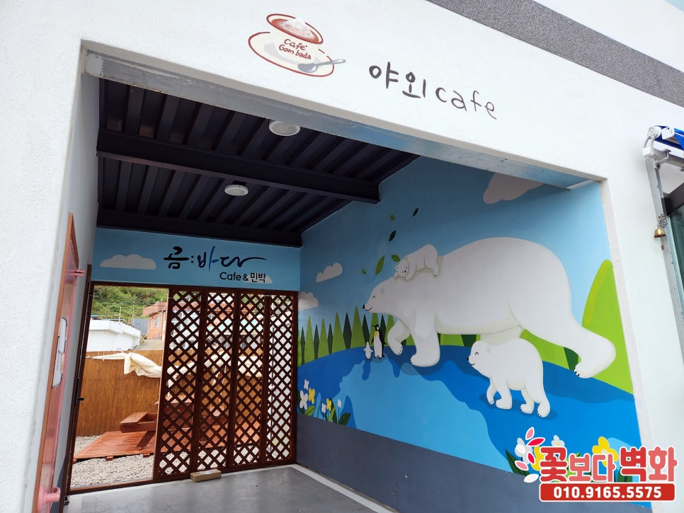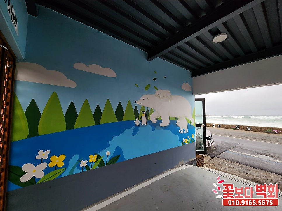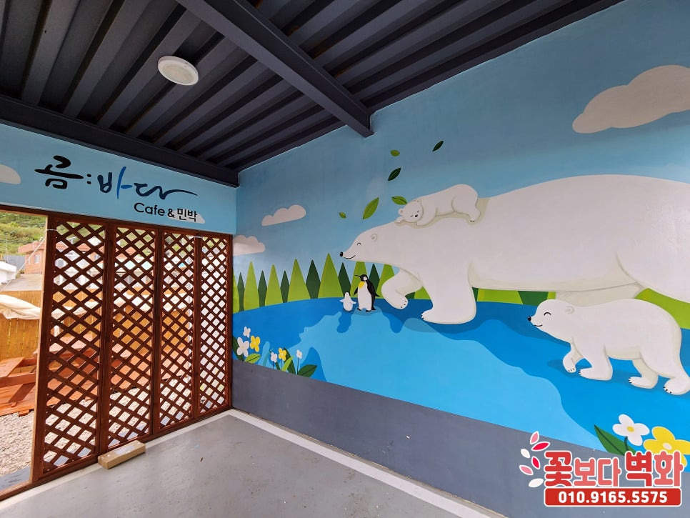 영덕 카페 곰바다 귀여운 곰캐릭터 벽화/ 카페벽화, 펜션벽화, 예쁜벽화