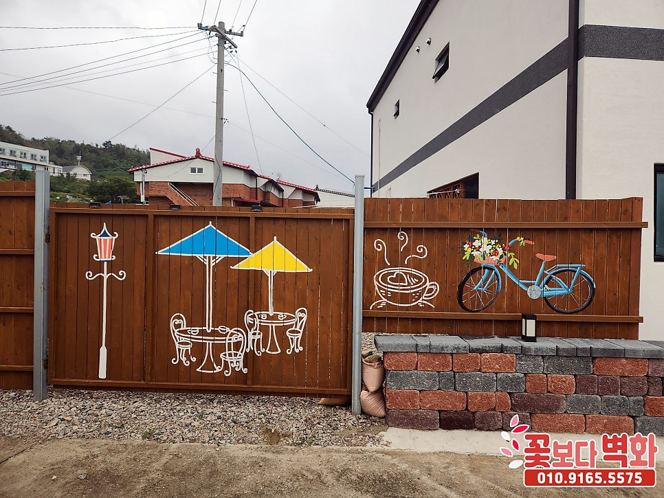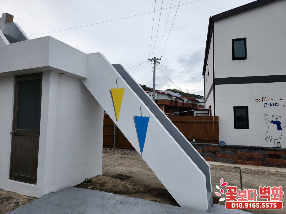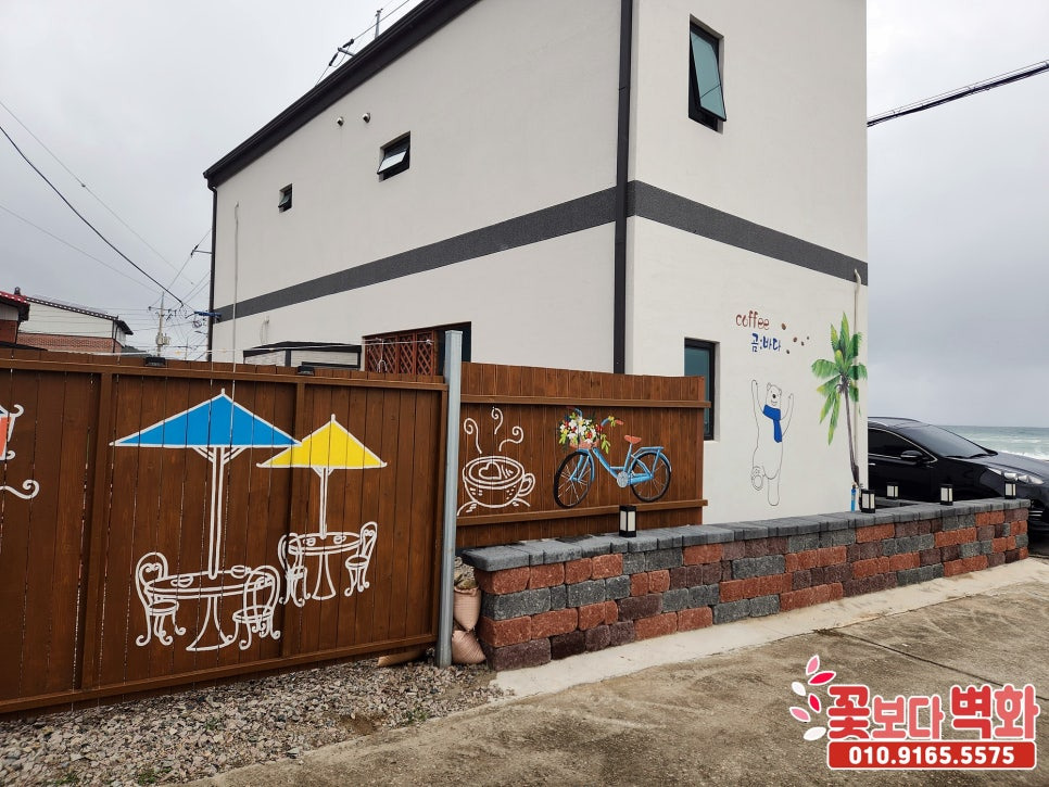 영덕에 위치한 곰바다 카페&펜션 외벽 인테리어 벽화입니다.