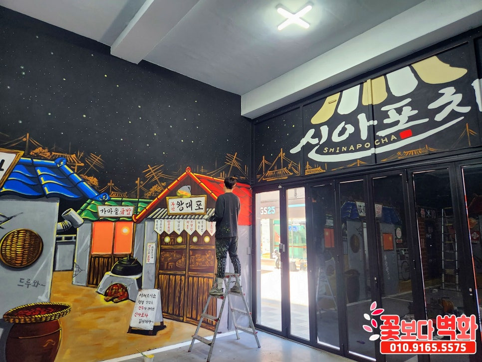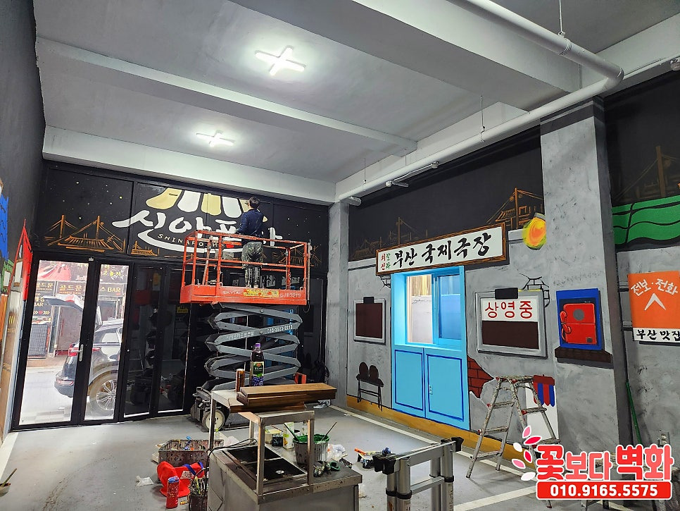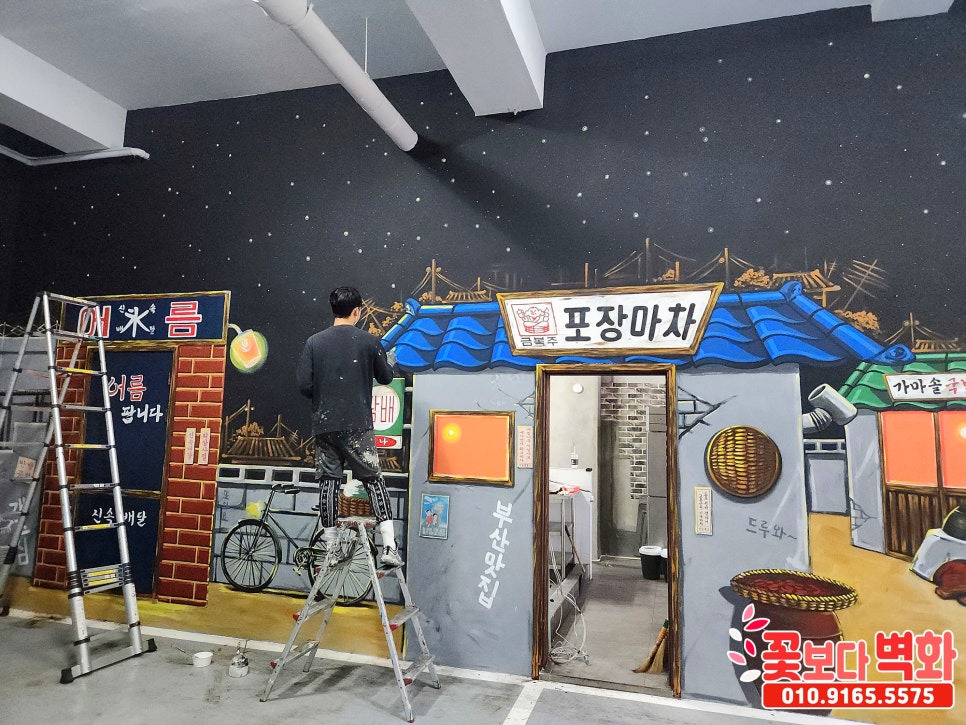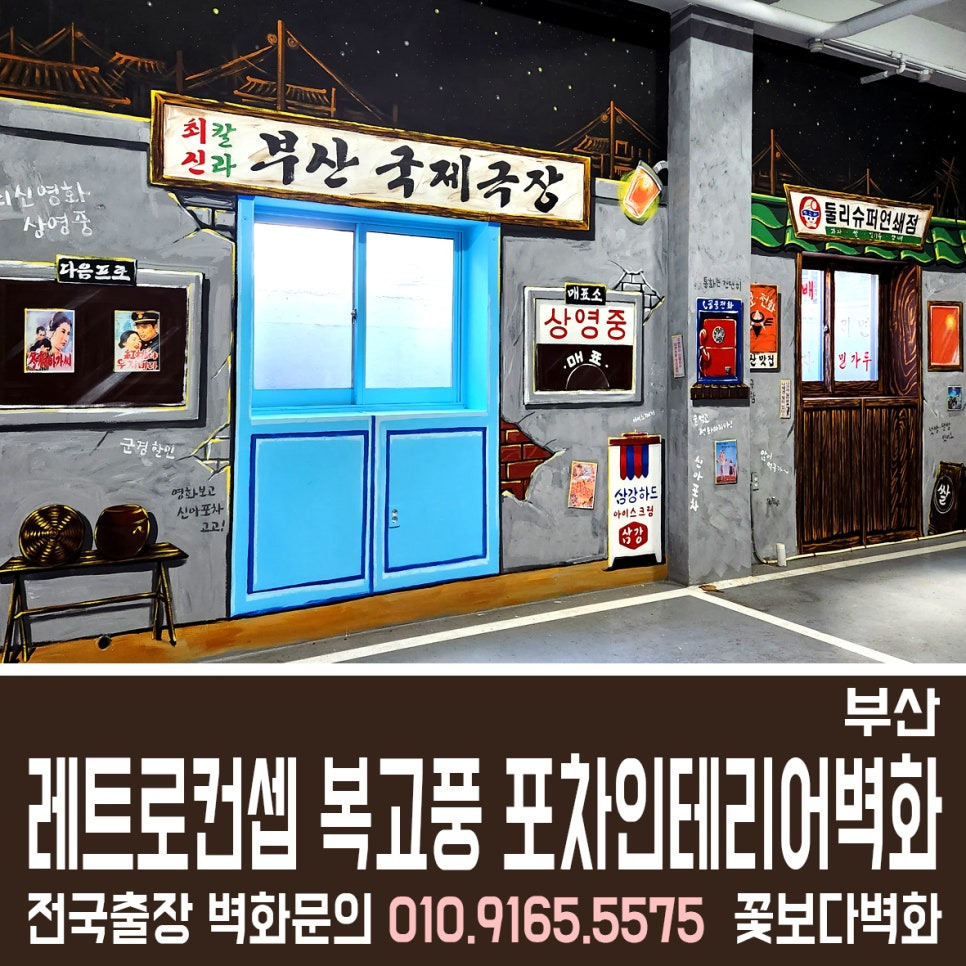 부산 신아포차 레트로컨셉 옛날 복고풍 인테리어벽화, 술집벽화, 포차인테리어, 7080, 꽃보다벽화