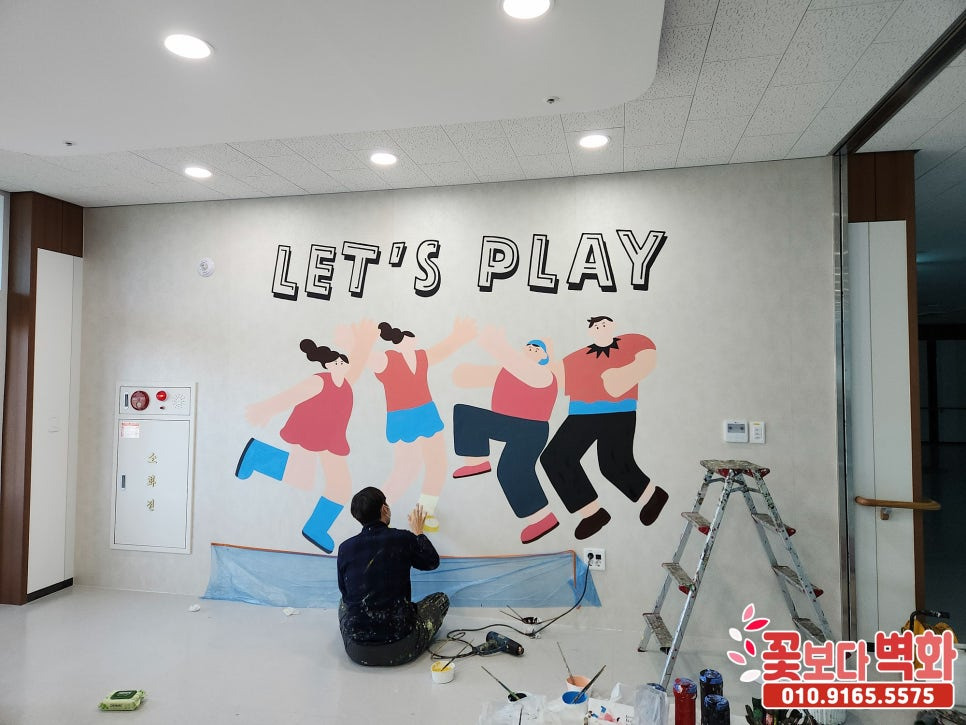 휴게공간에는 일러스트 느낌으로 아이들이 놀고 있는
