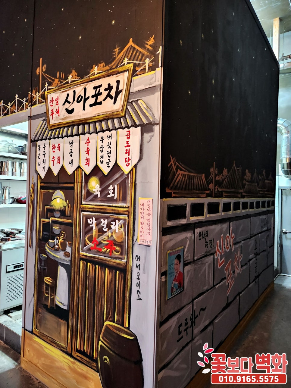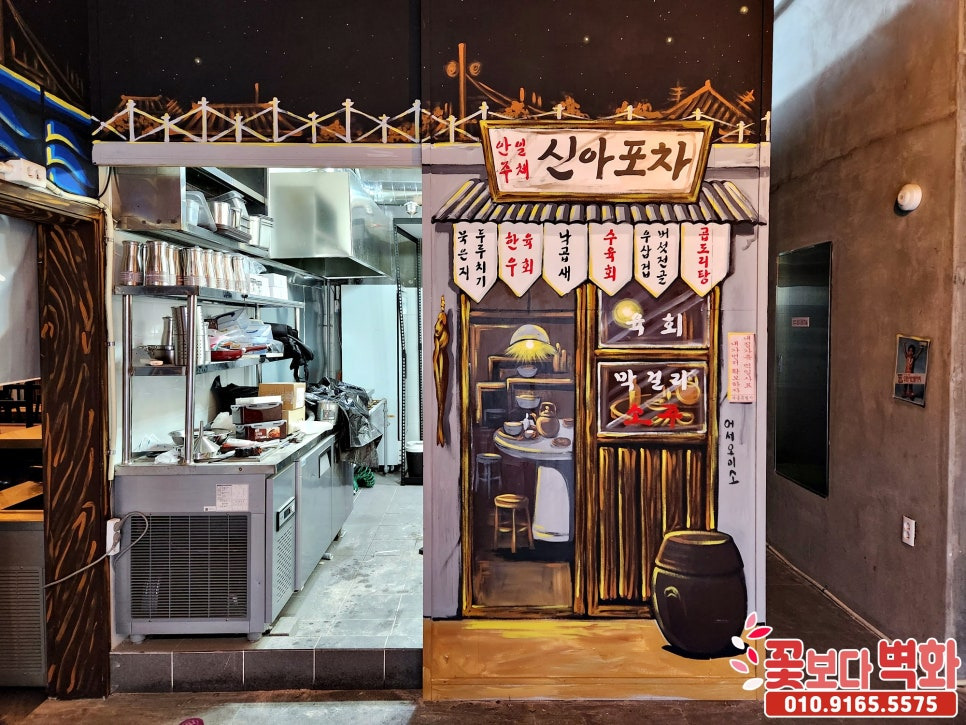 주방 쪽 벽면에는 신아포차의 모습이 그려졌습니다.