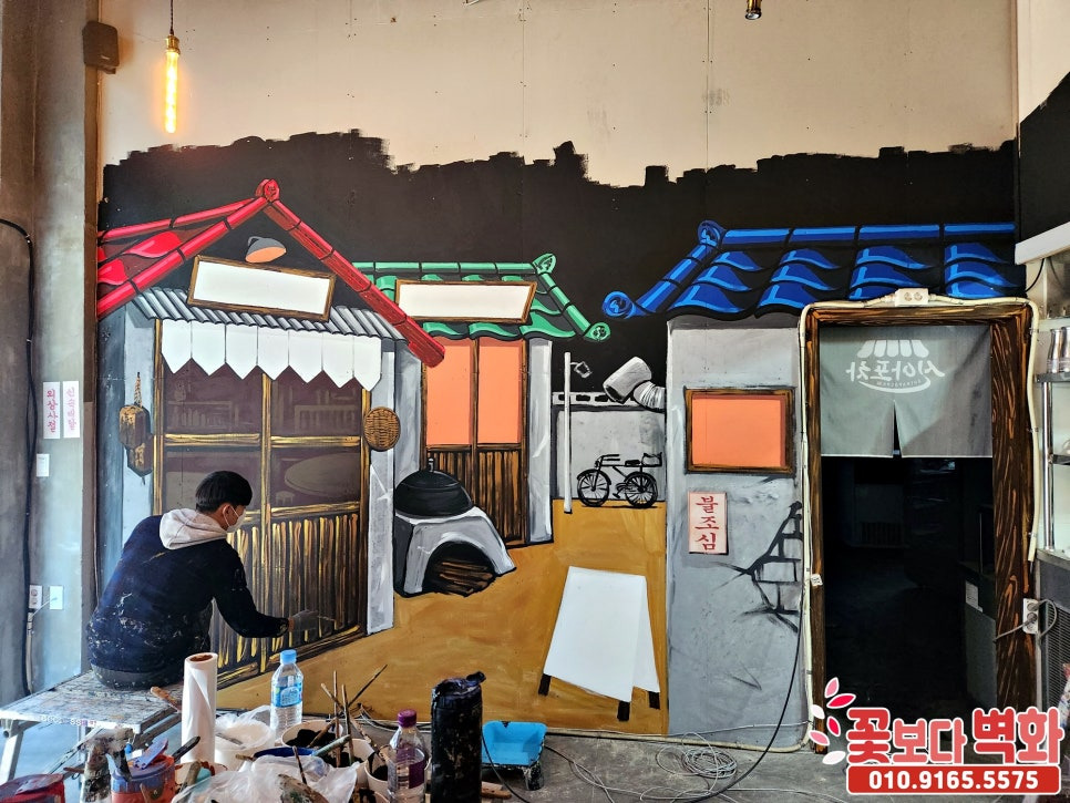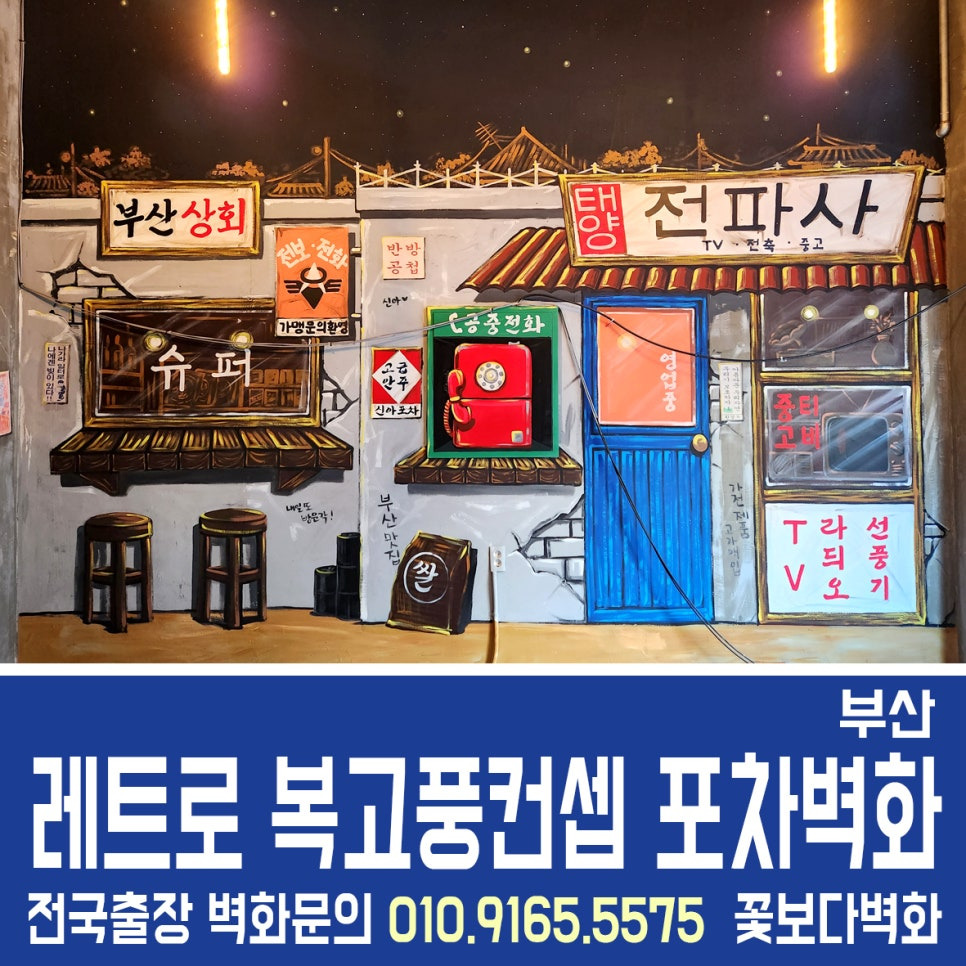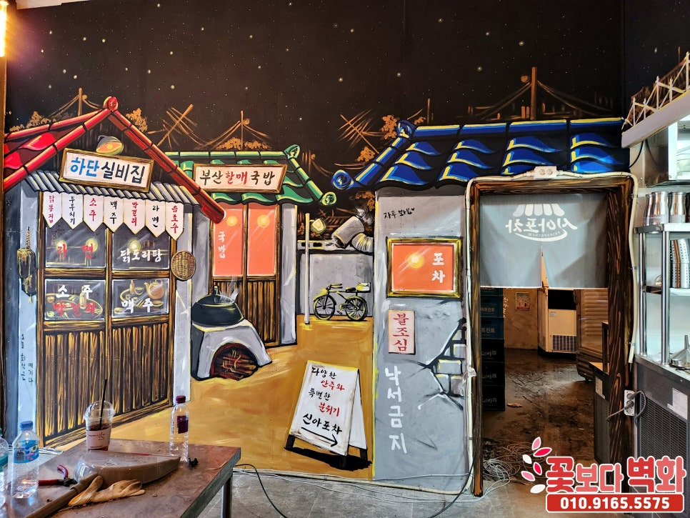 부산 신아포차 레트로감성 복고풍 인테리어벽화/ 7080 포차벽화