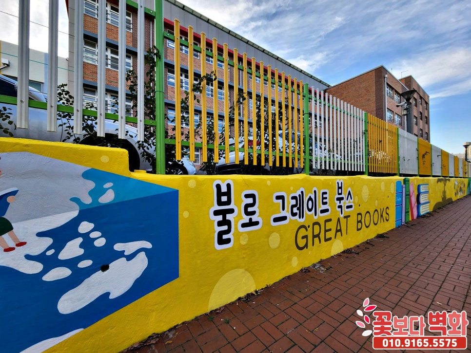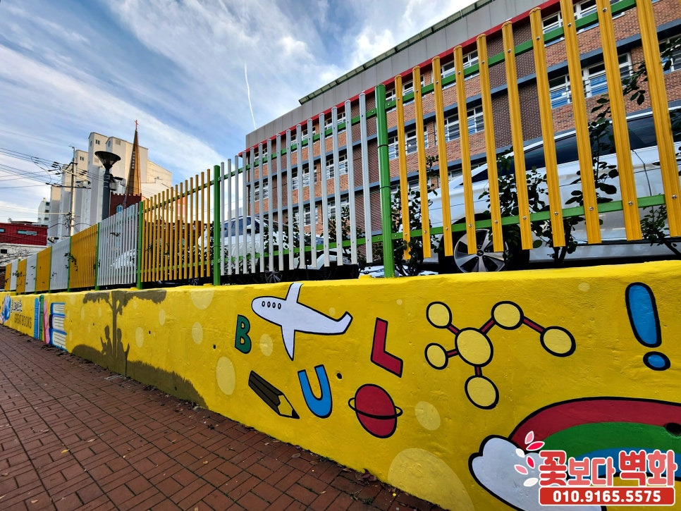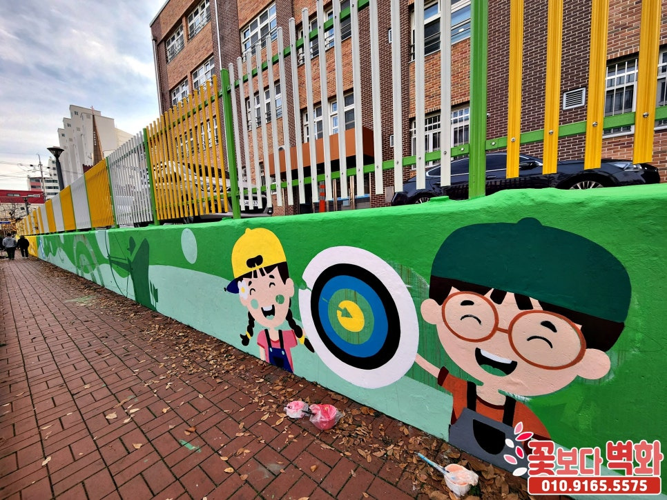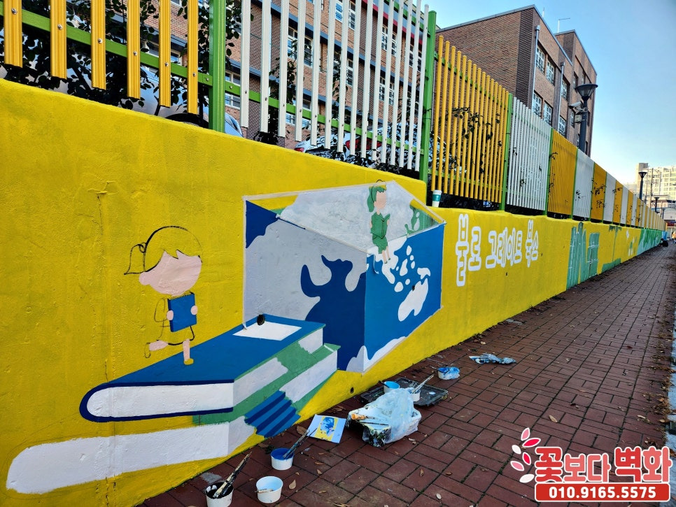 대구 불로초등학교 담벼락에 그려진 학교벽화, 환경개선, 공공벽화, 꽃보다벽화