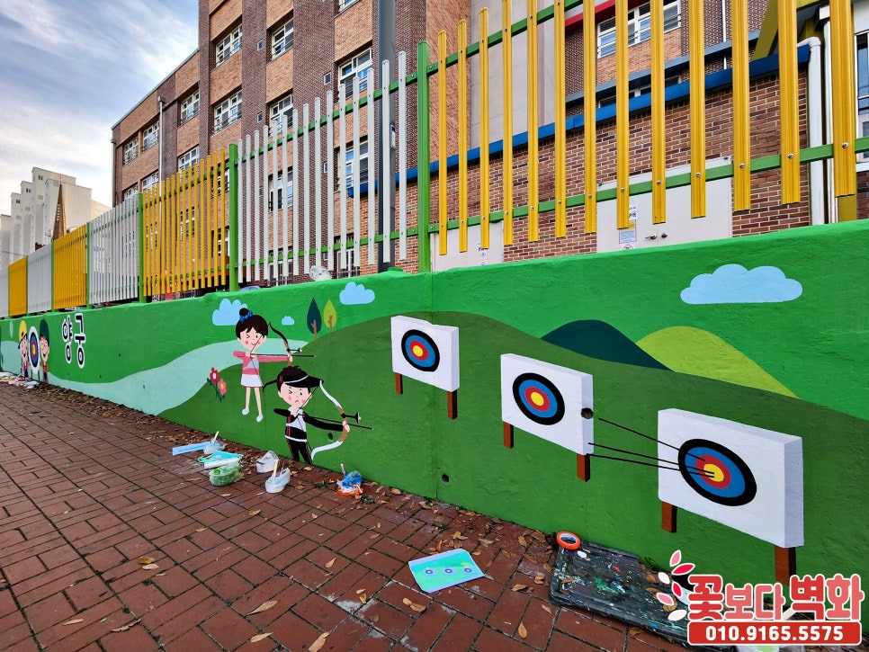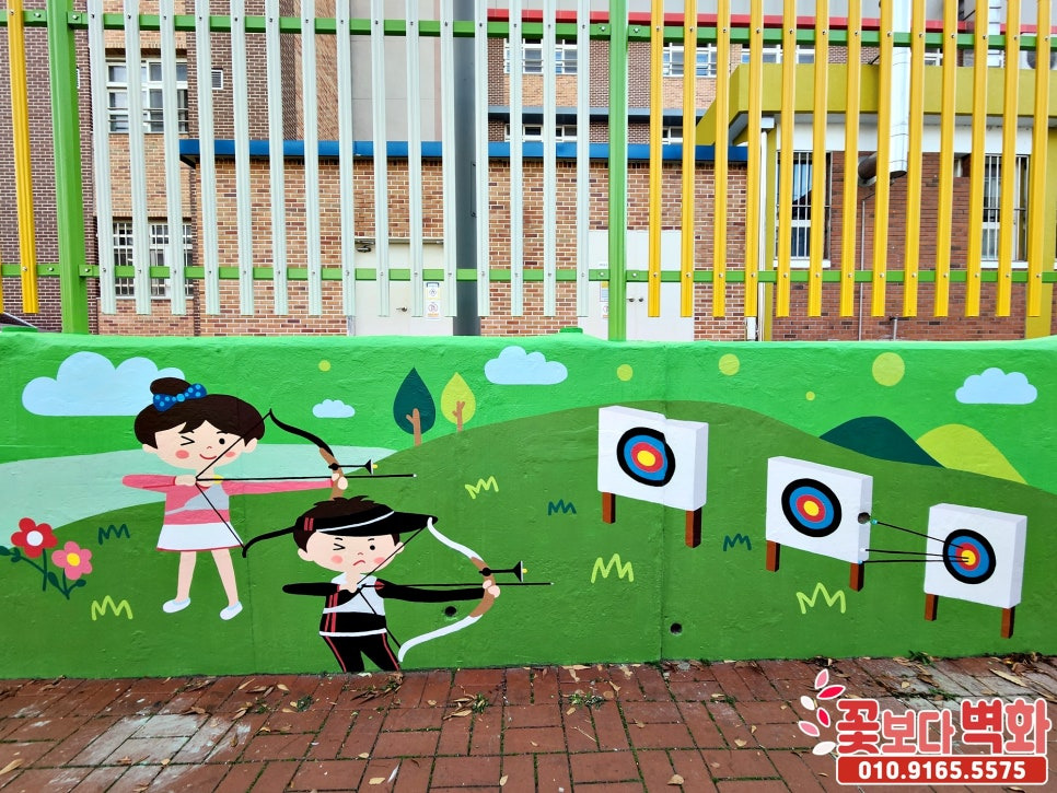 양궁 특성화 학교임을 부각할 수 있는 다양한 그림들로 채워지는 중입니다.