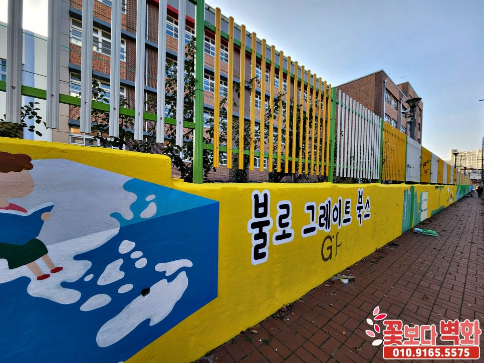 대구 불로초등학교 담벼락에 그려진 학교벽화, 환경개선, 공공벽화, 꽃보다벽화