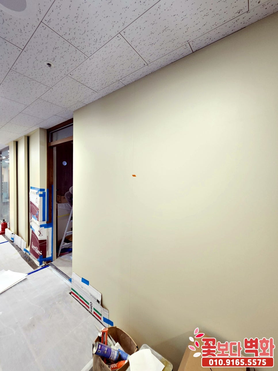 작업은 가게 외부 벽면과 내부 세면대 위쪽으로