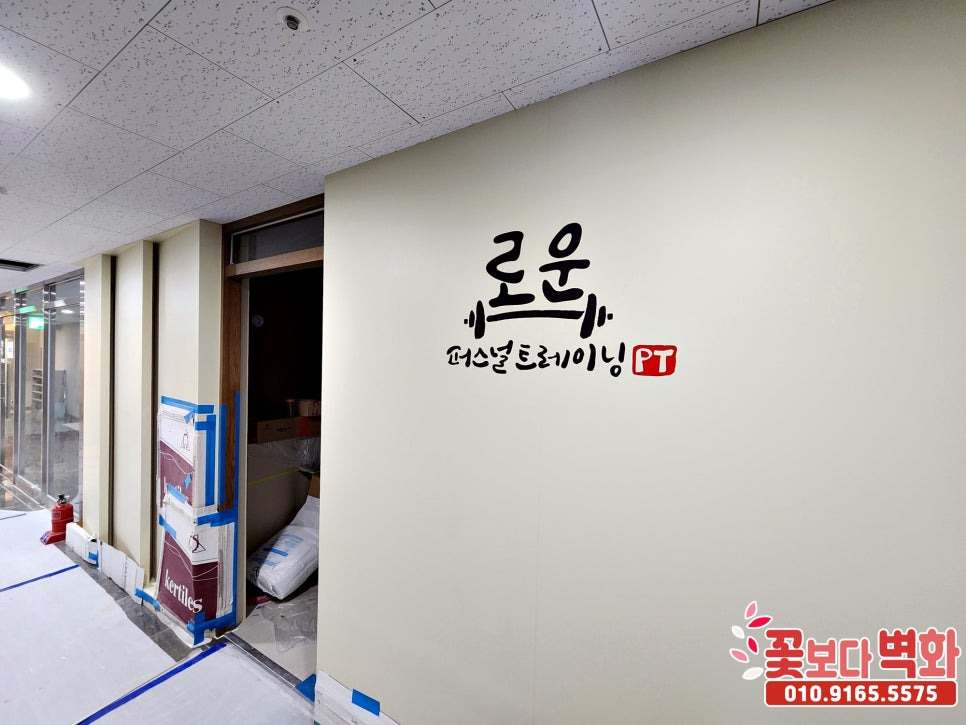 대구 피트니스센터 깔끔한 로고 스텐실벽화 / 인테리어벽화, 로고벽화