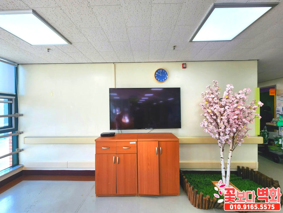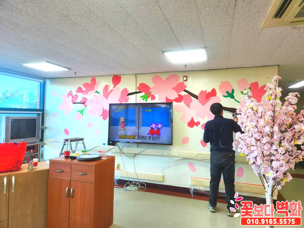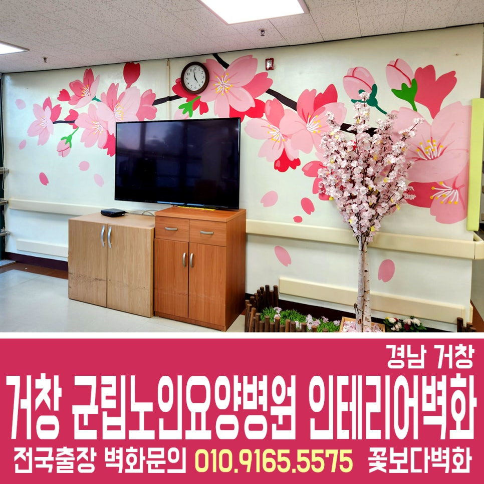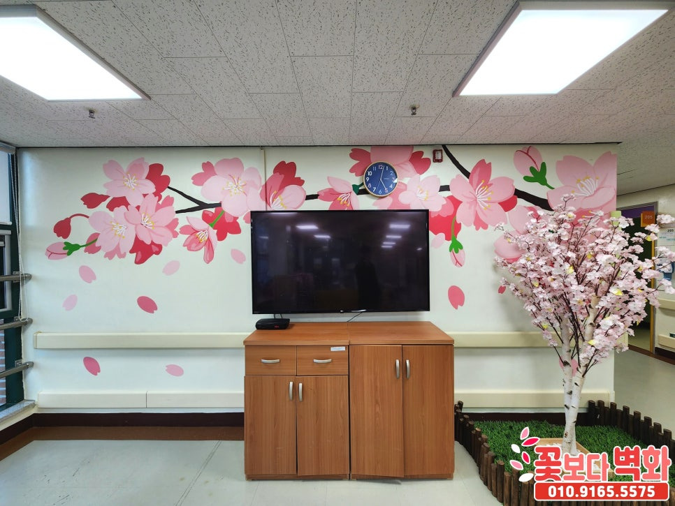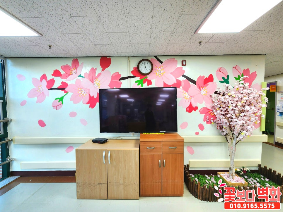 거창 군립 노인요양병원 휴게실 벚꽃 인테리어 벽화시공, 꽃보다벽화, 병원인테리어, 병원벽화