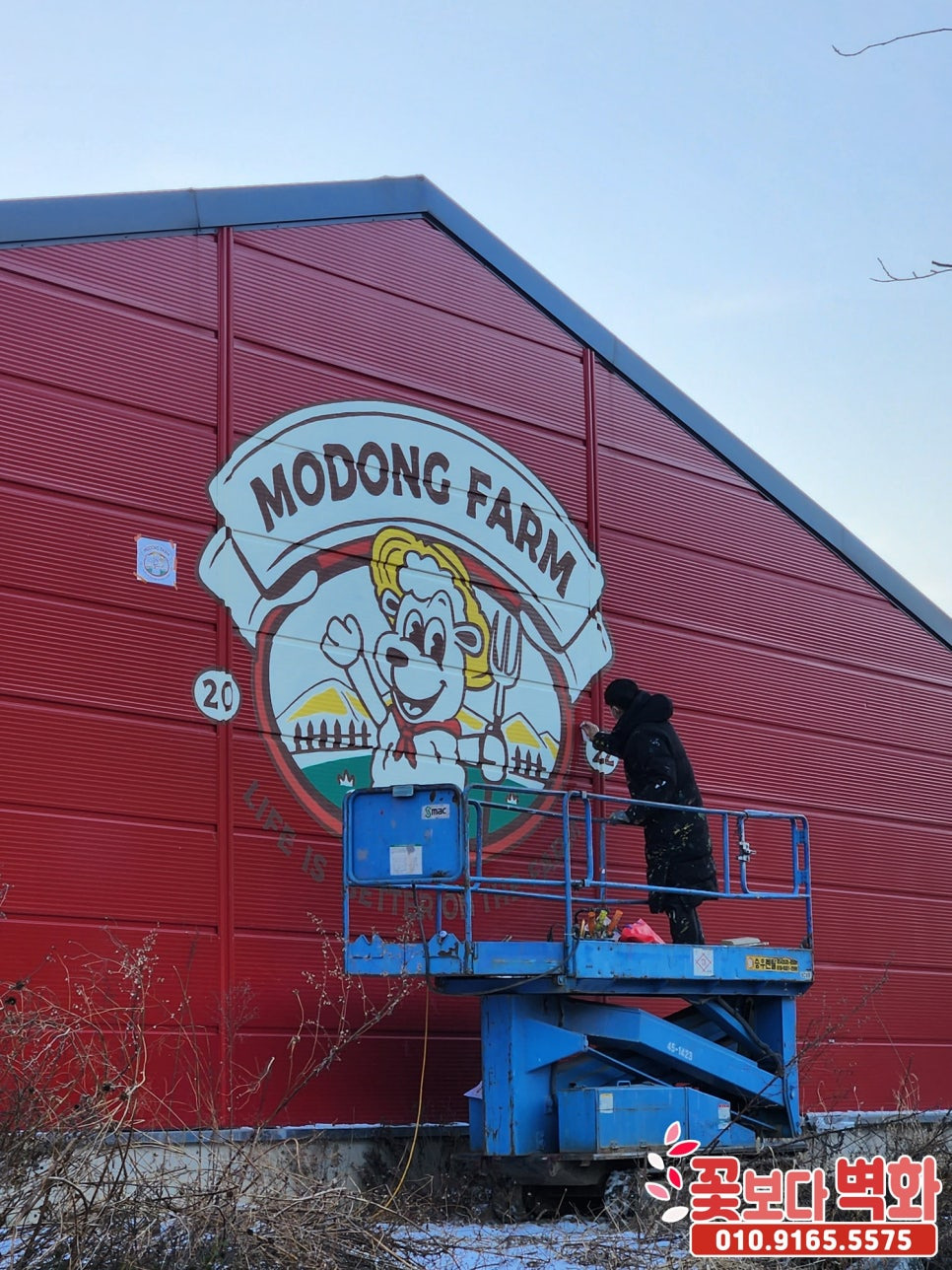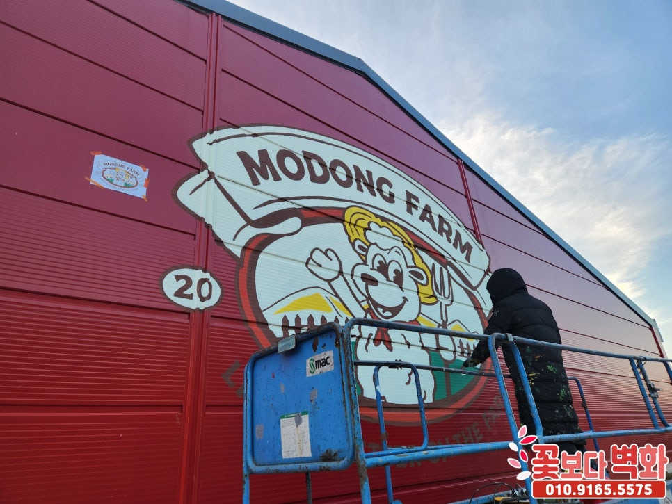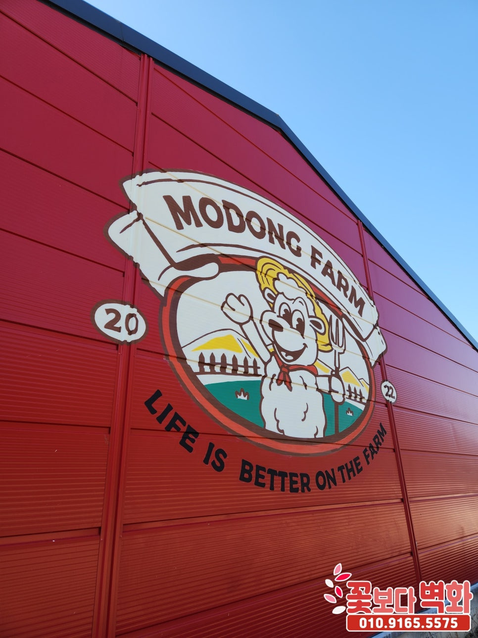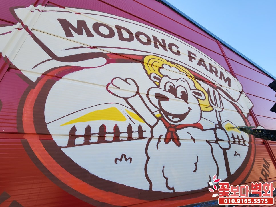 성주 모동목장 컨테이너 외벽 대형 로고스텐실 벽화, 인테리어벽화, 캐릭터벽화, 간판벽화, 벽화시공