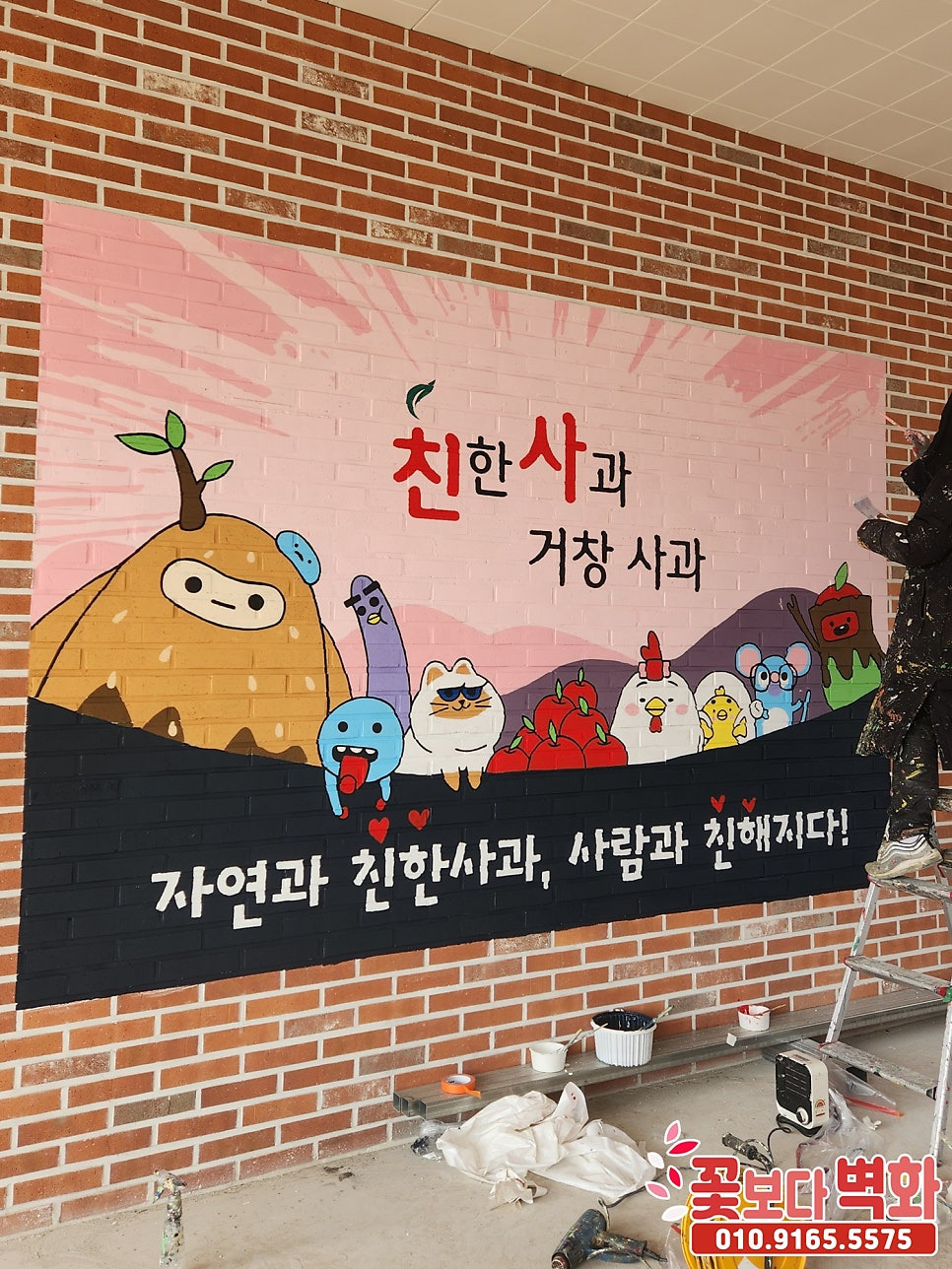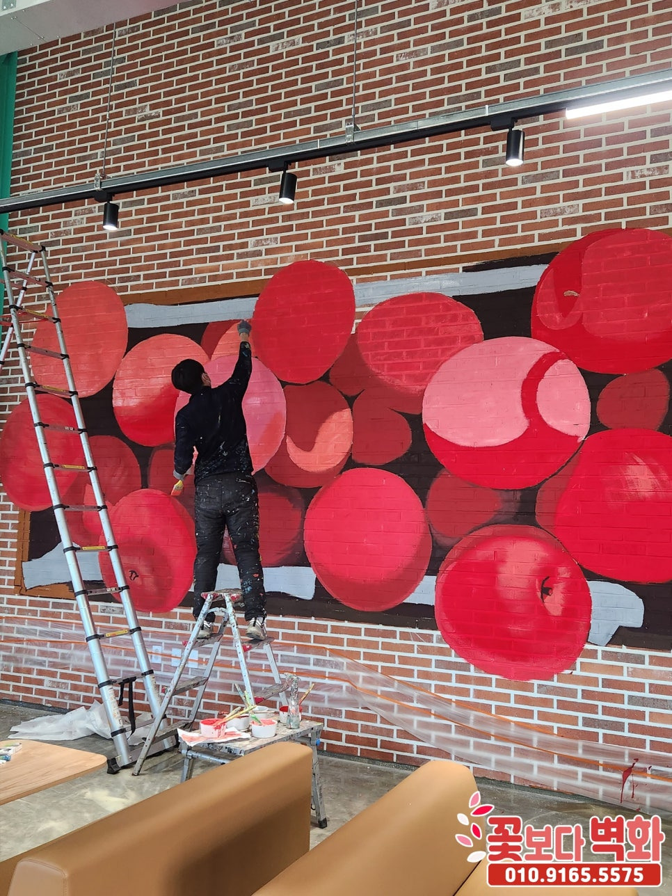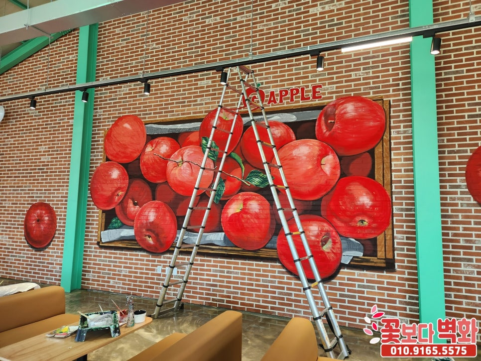 거창 지애플(G APPLE) 사과카페 트릭아트 사과그림 인테리어벽화 시공, 꽃보다벽화