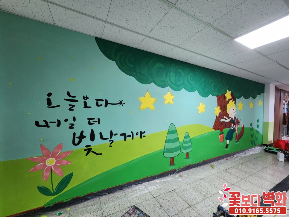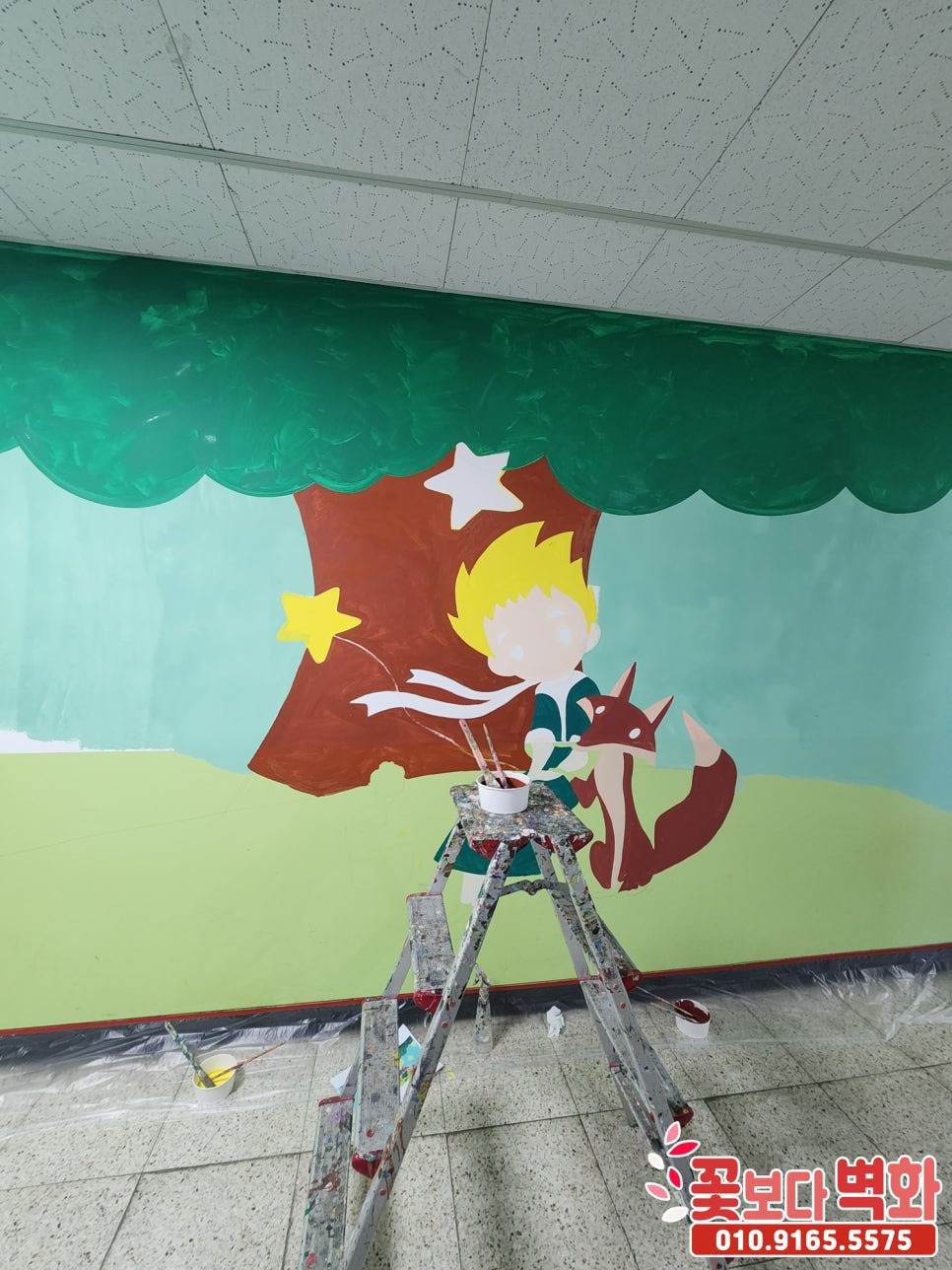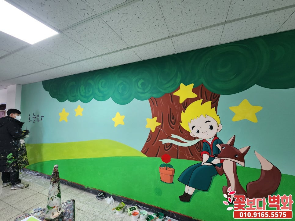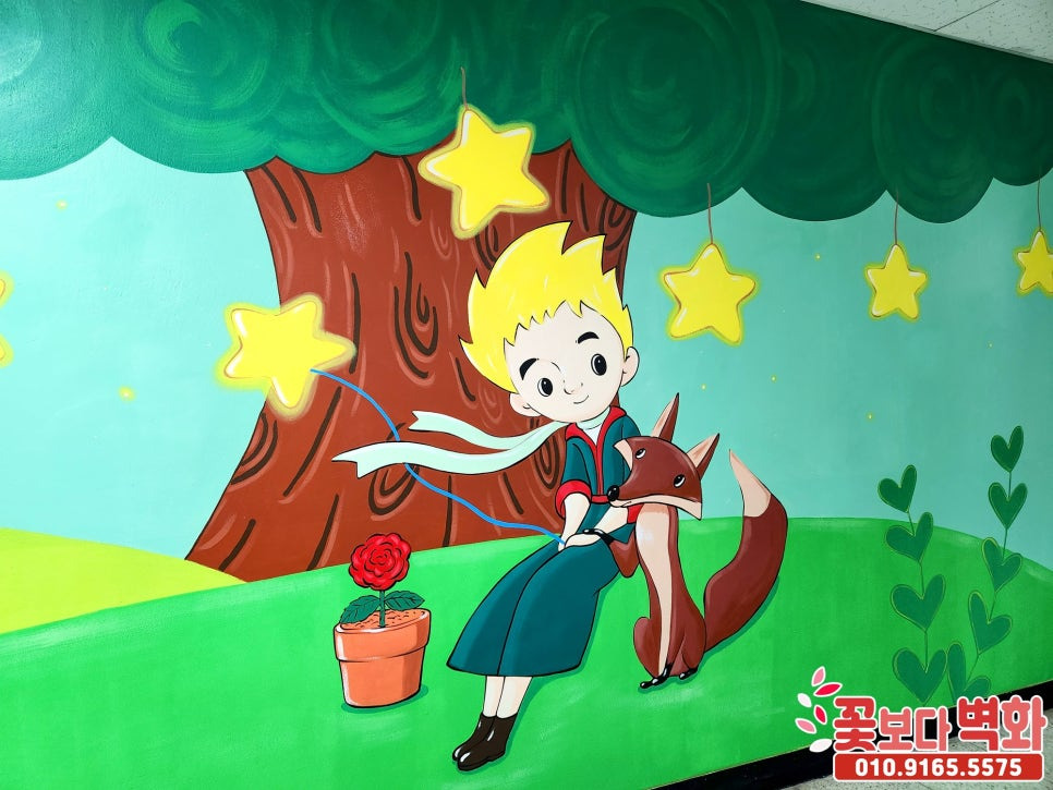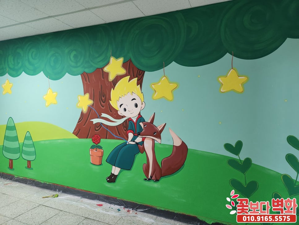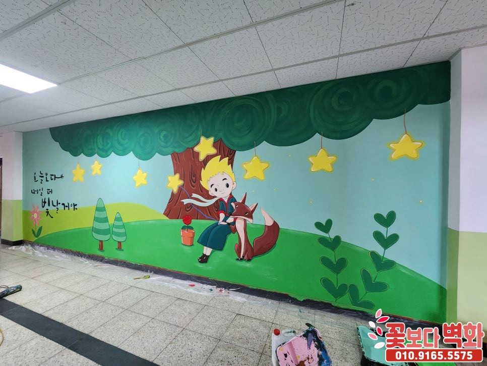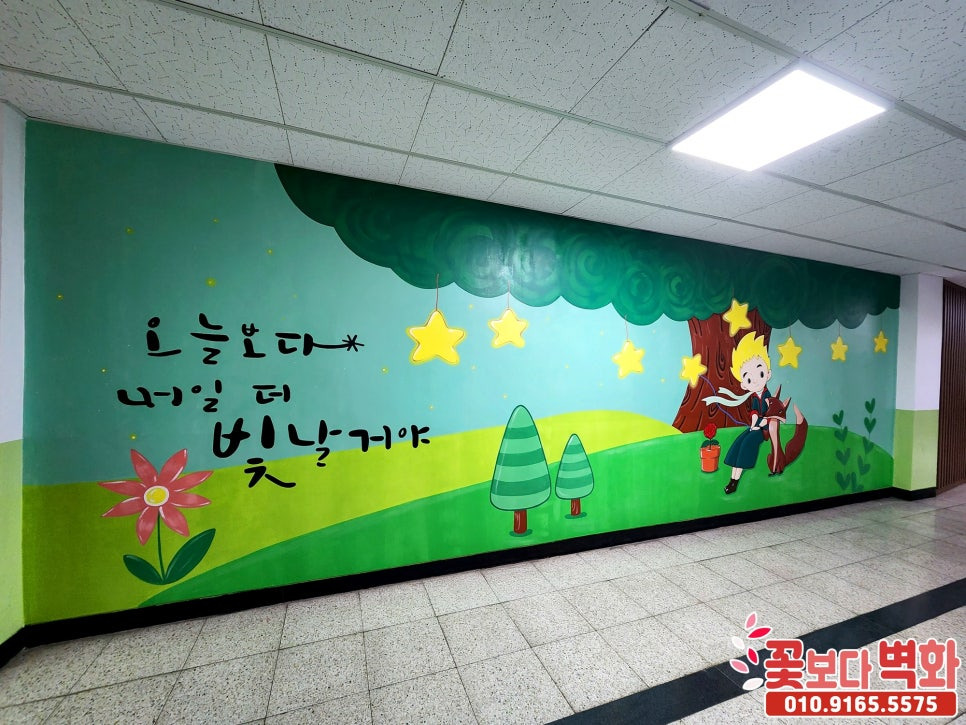 성주초등학교 복도 공간에 그려진 예쁜 어린왕자 벽화, 학교인테리어, 학교벽화, 꽃보다벽화