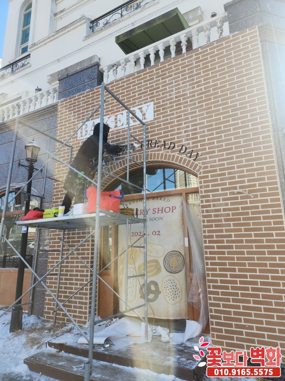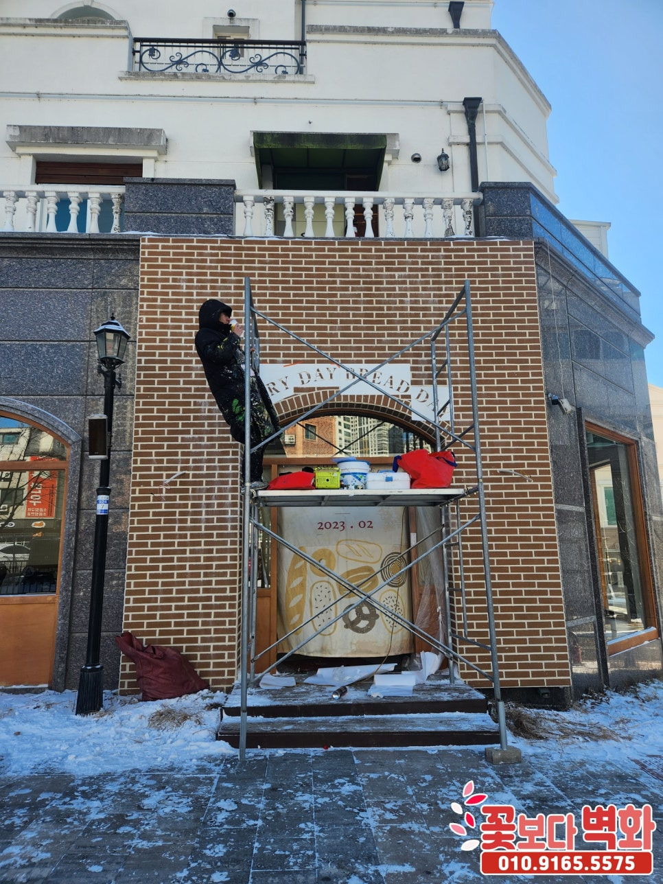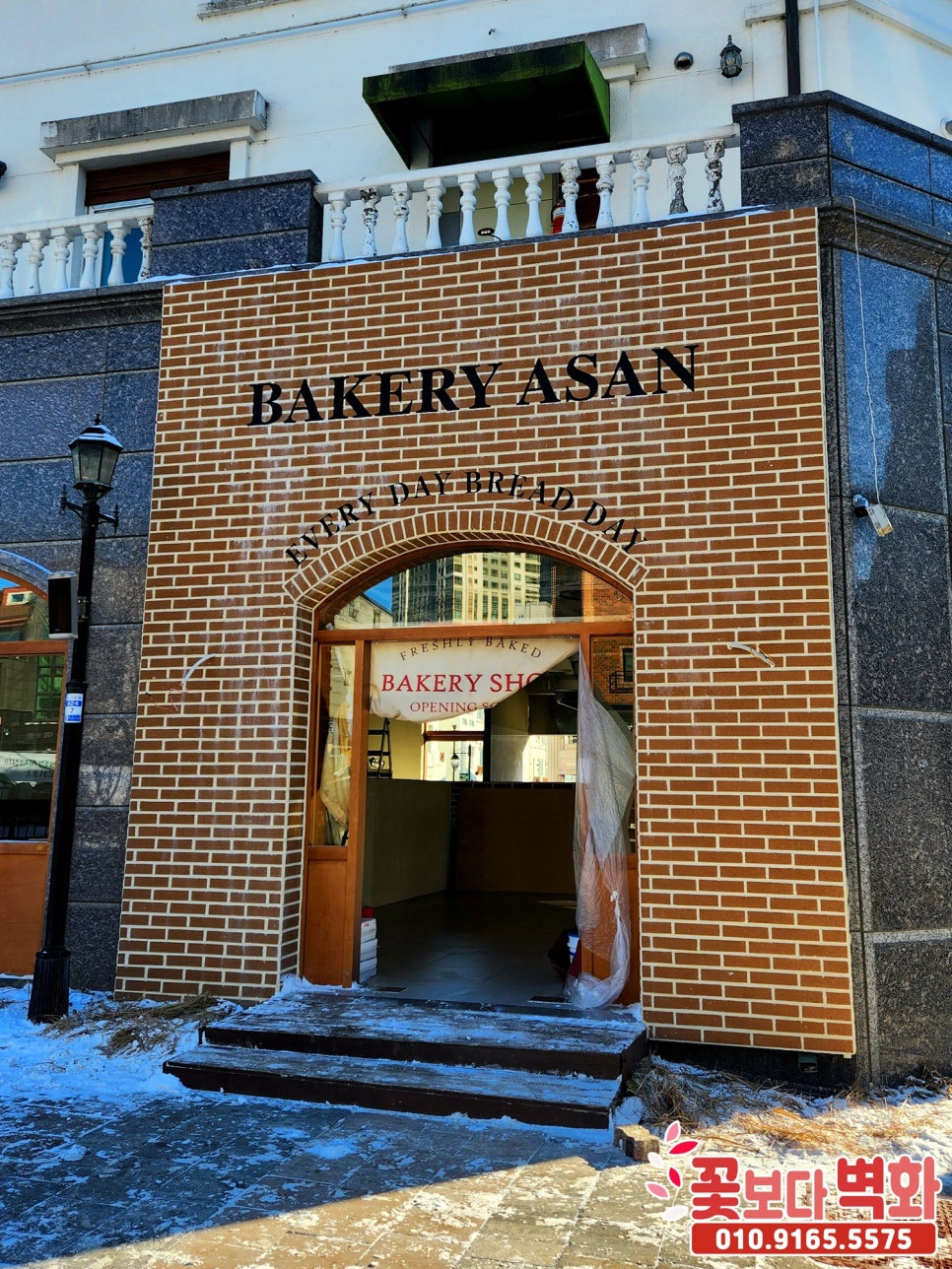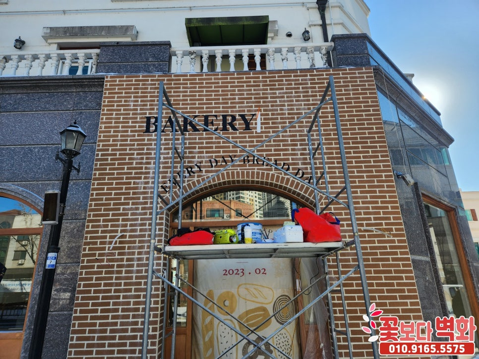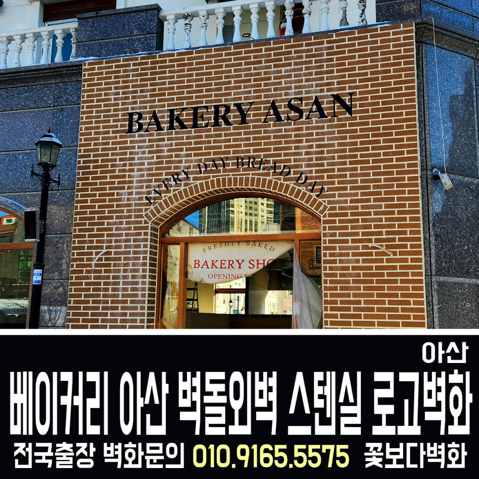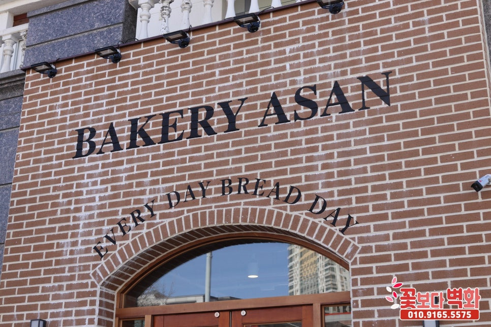 아산 베이커리 외부 파벽돌 로고스텐실 인테리어벽화, 간판벽화, 간판글자, 꽃보다벽화
