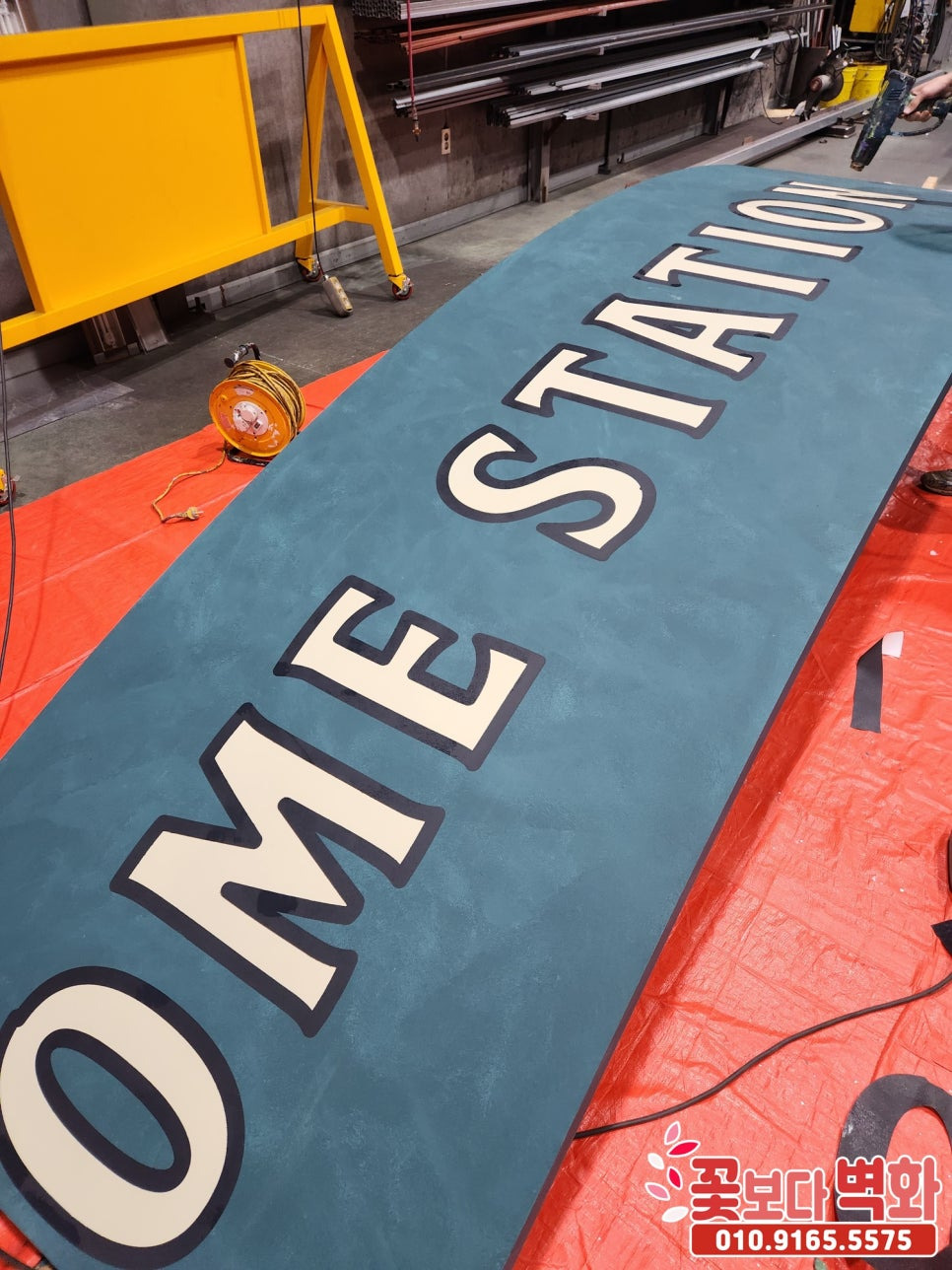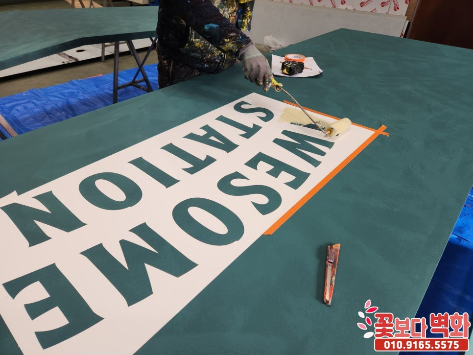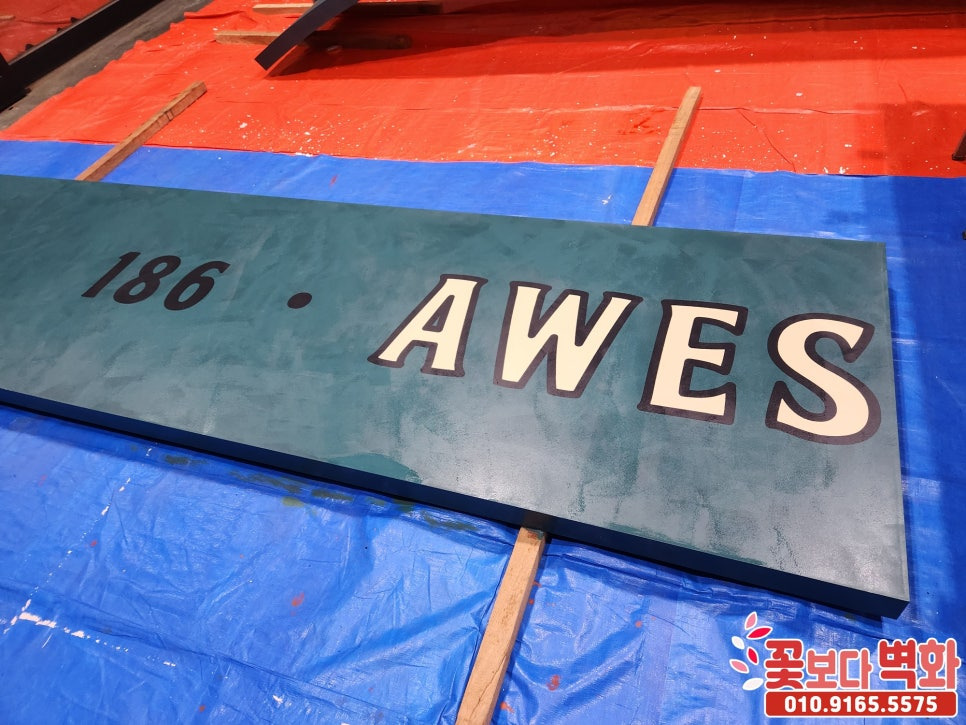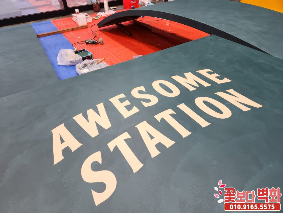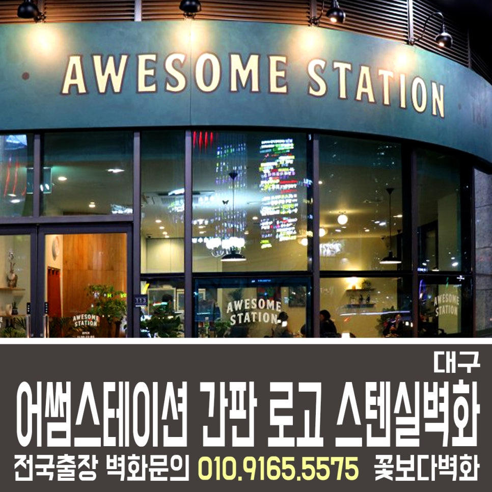 대구 죽전 어썸스테이션 간판 로고 스텐실 인테리어벽화/ 꽃보다벽화, 간판벽화