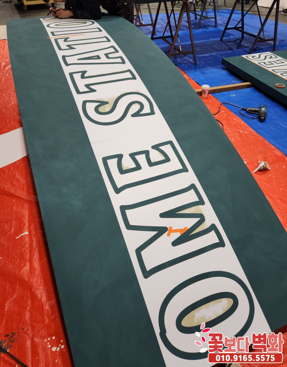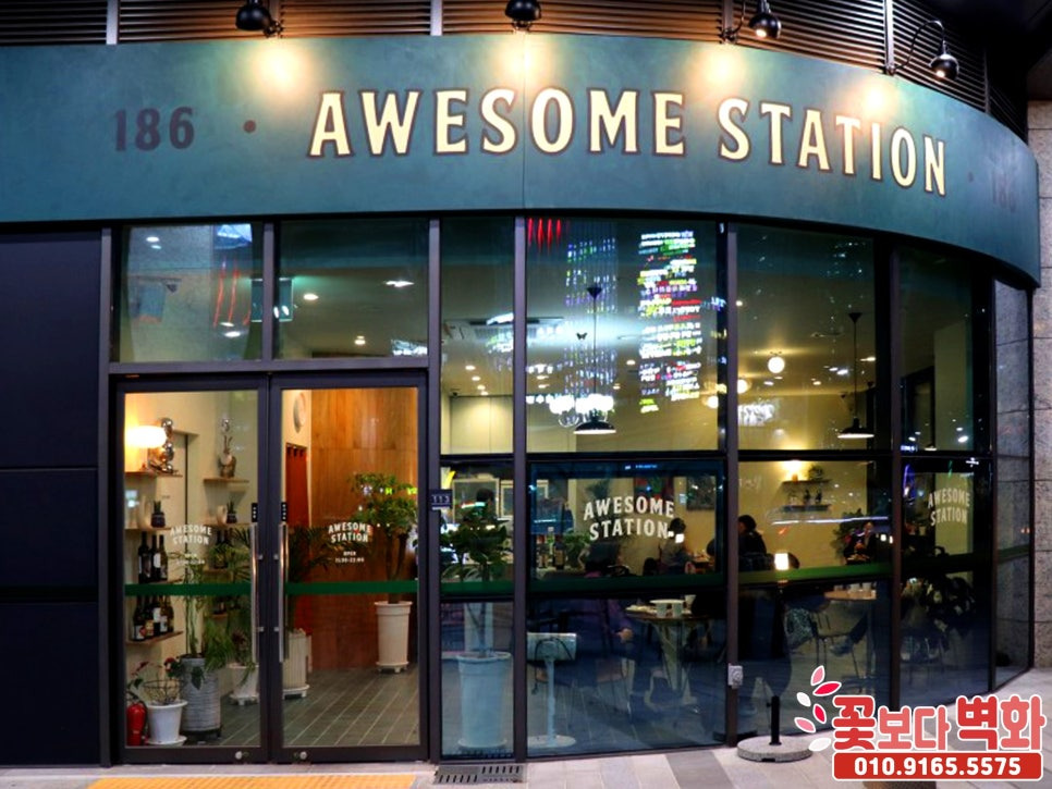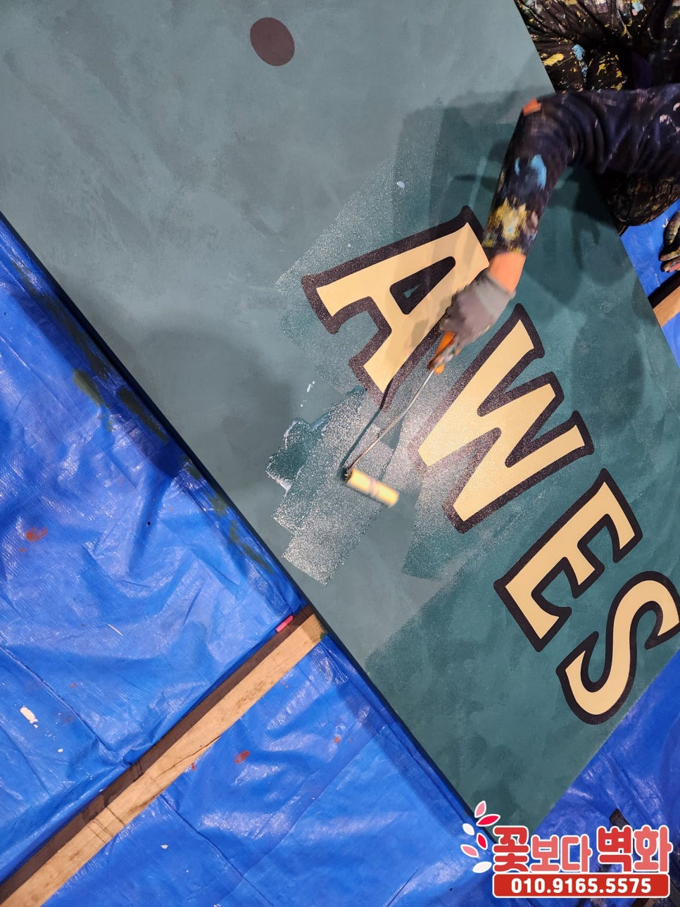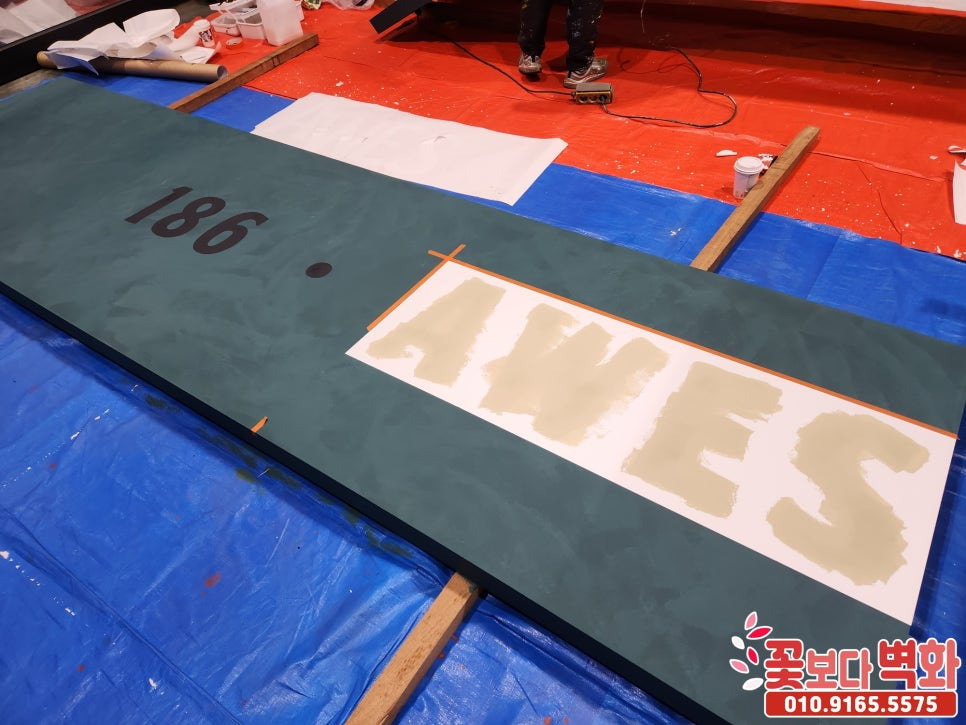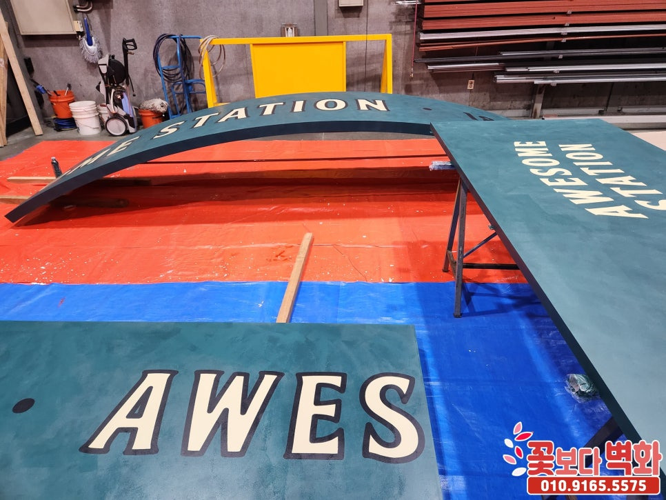 대구 죽전 어썸스테이션 간판 로고 스텐실 인테리어벽화/ 꽃보다벽화, 간판벽화