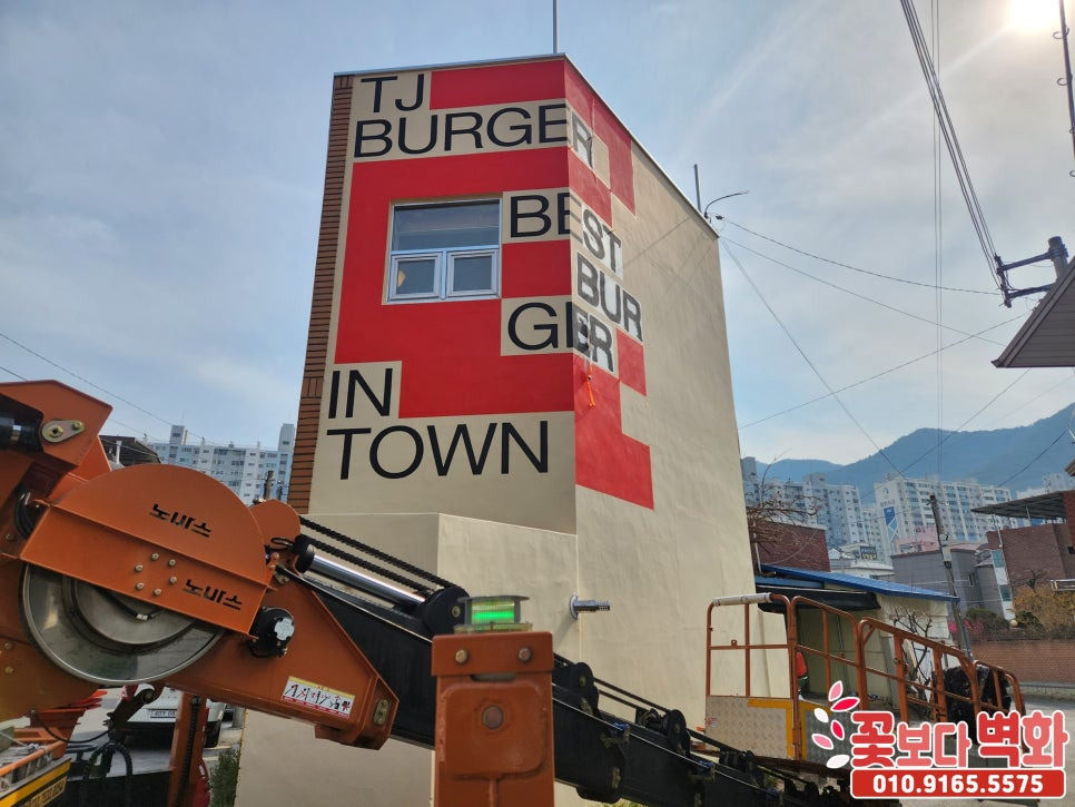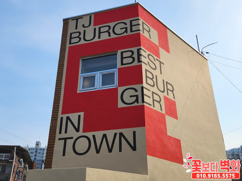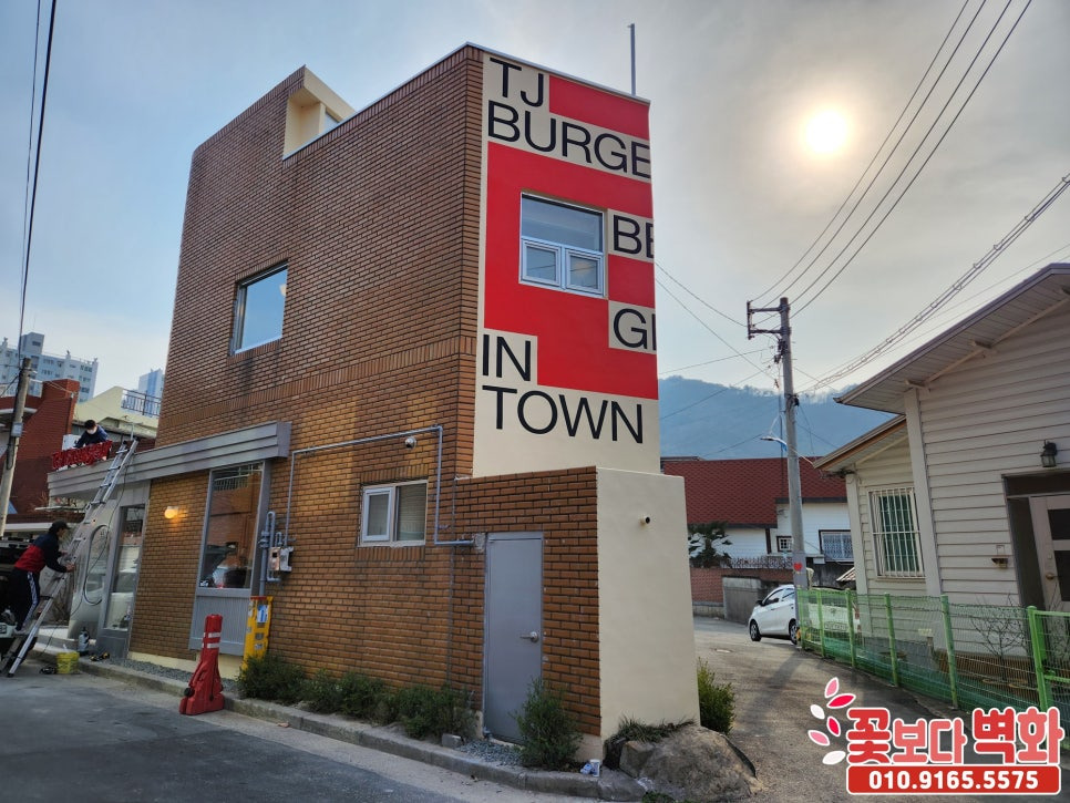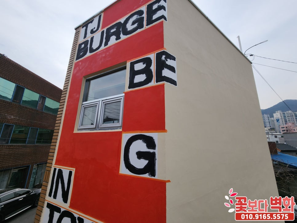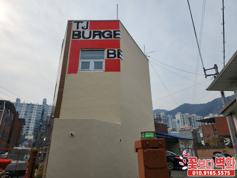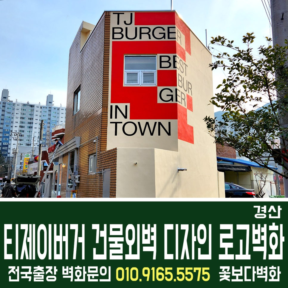경산 티제이버거 건물외벽 디자인 로고 스텐실벽화/ 인테리어벽화, 건물벽화, 꽃보다벽화