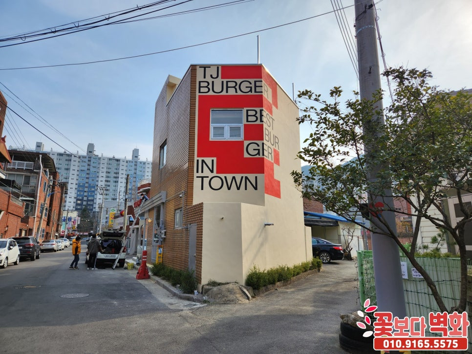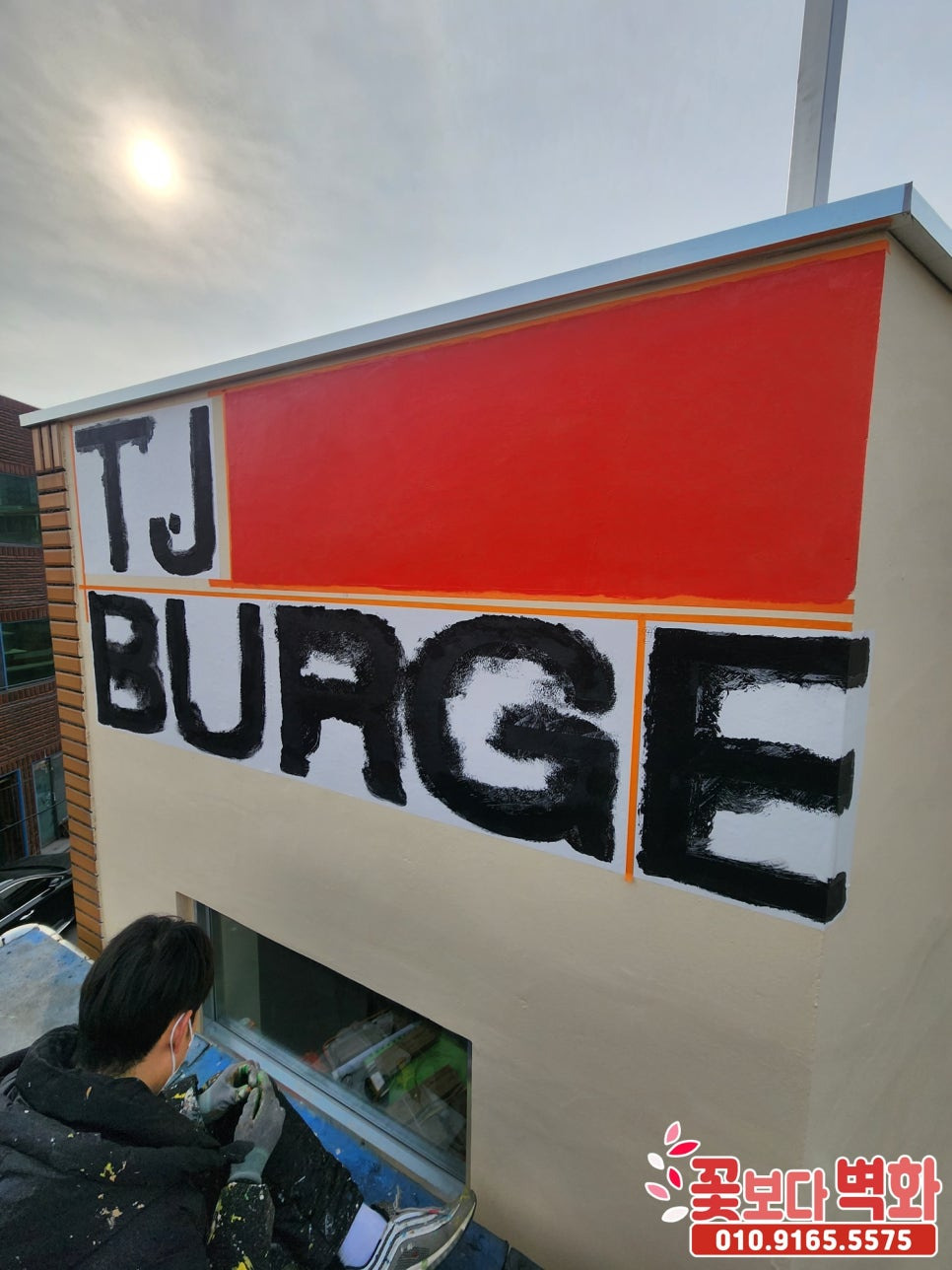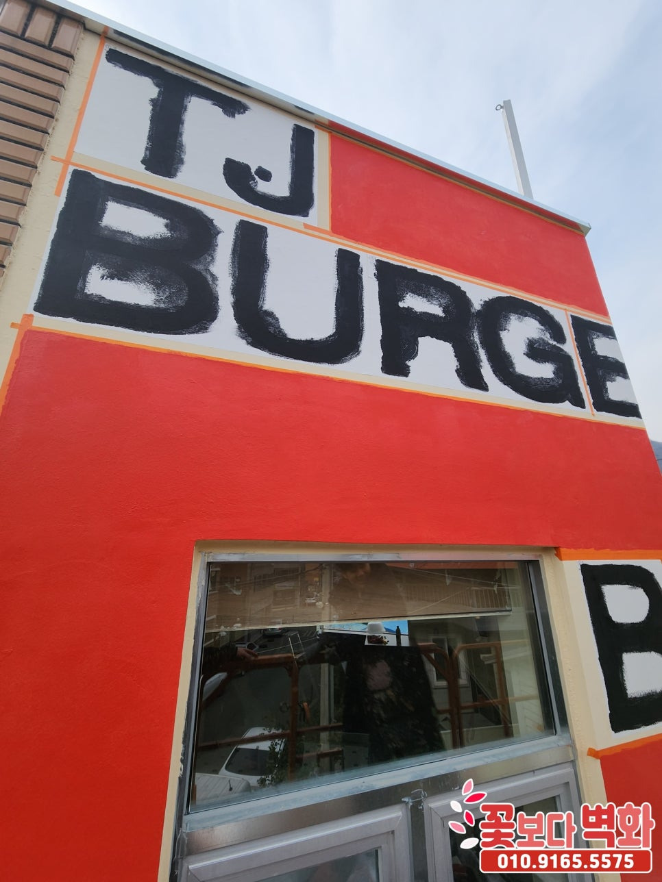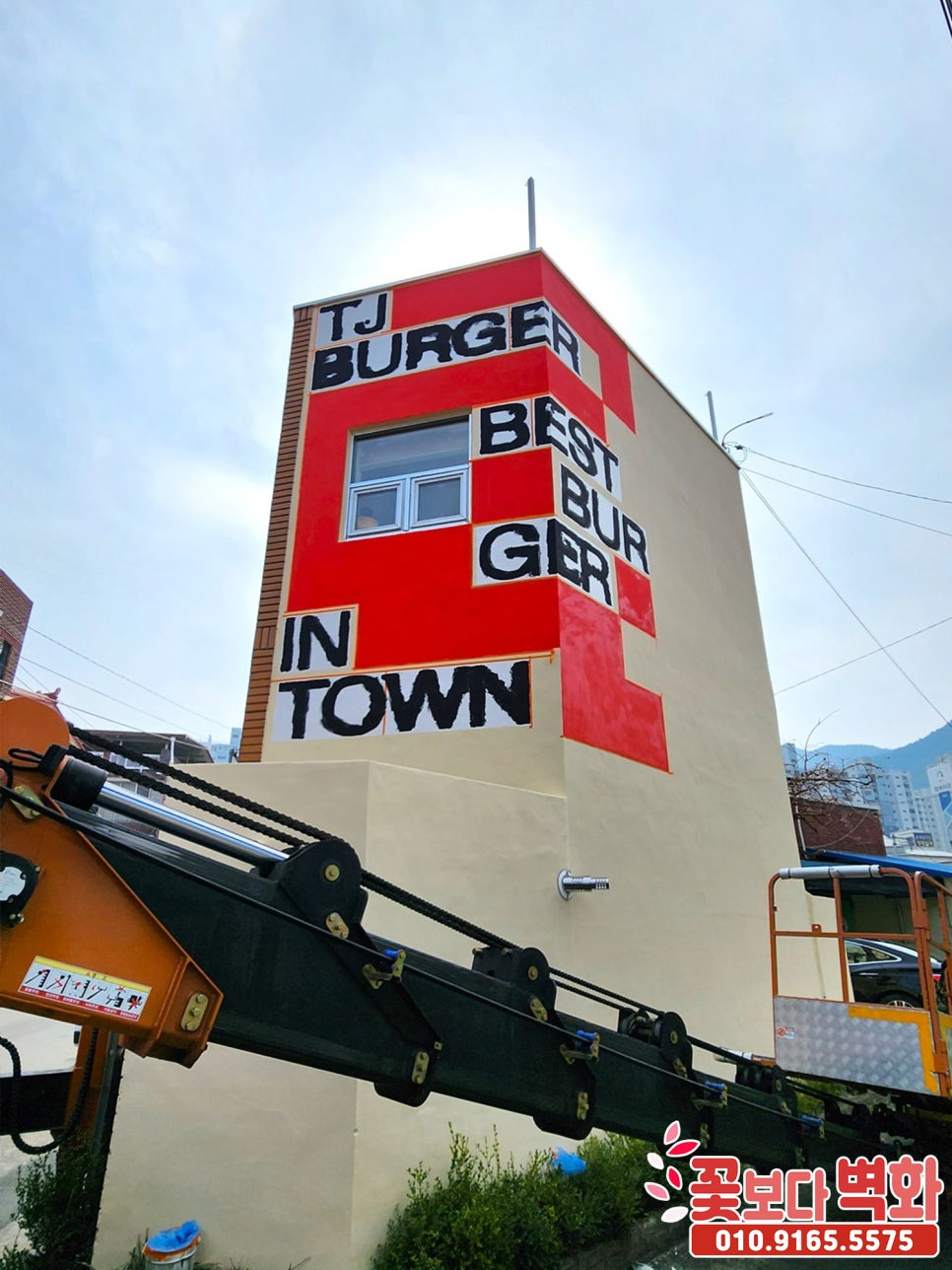 경산 티제이버거 건물외벽 디자인 로고 스텐실벽화/ 인테리어벽화, 건물벽화, 꽃보다벽화
