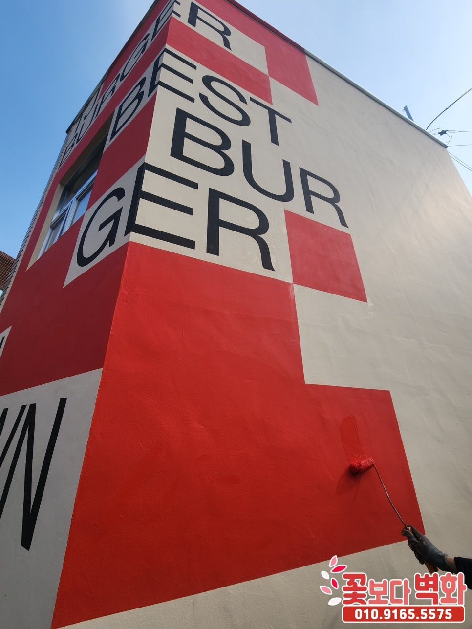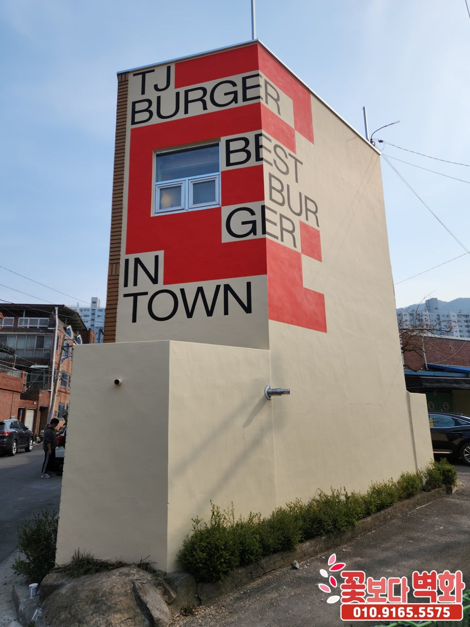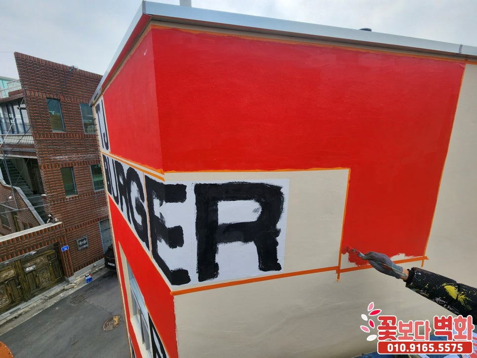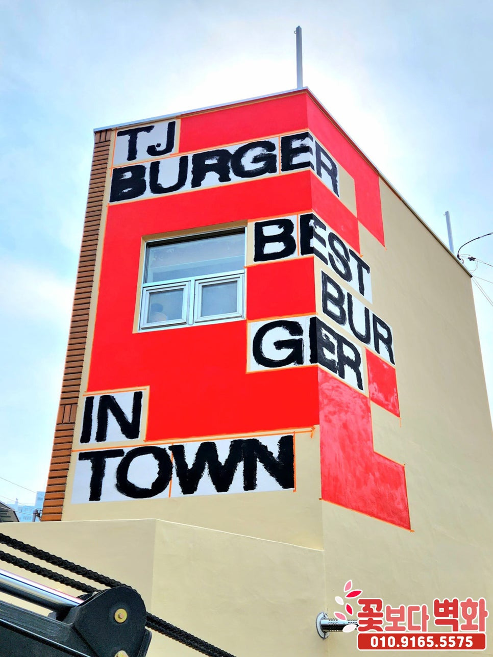 경산 티제이버거 건물외벽 디자인 로고 스텐실벽화/ 인테리어벽화, 건물벽화, 꽃보다벽화