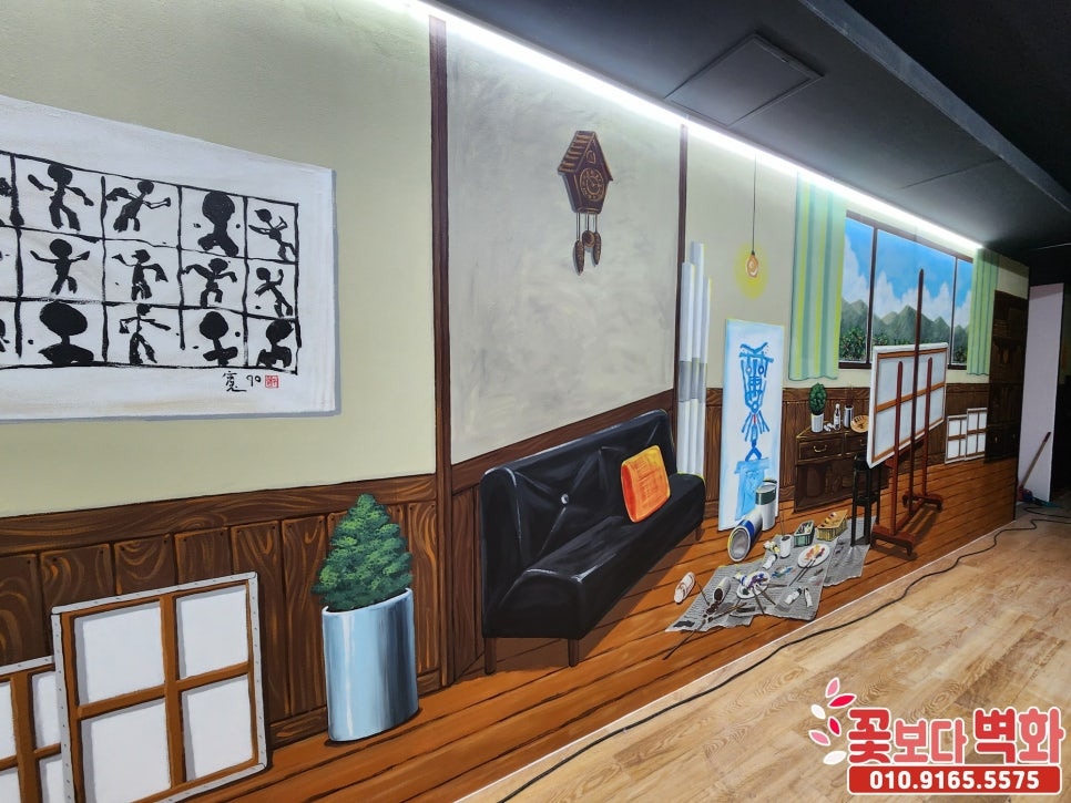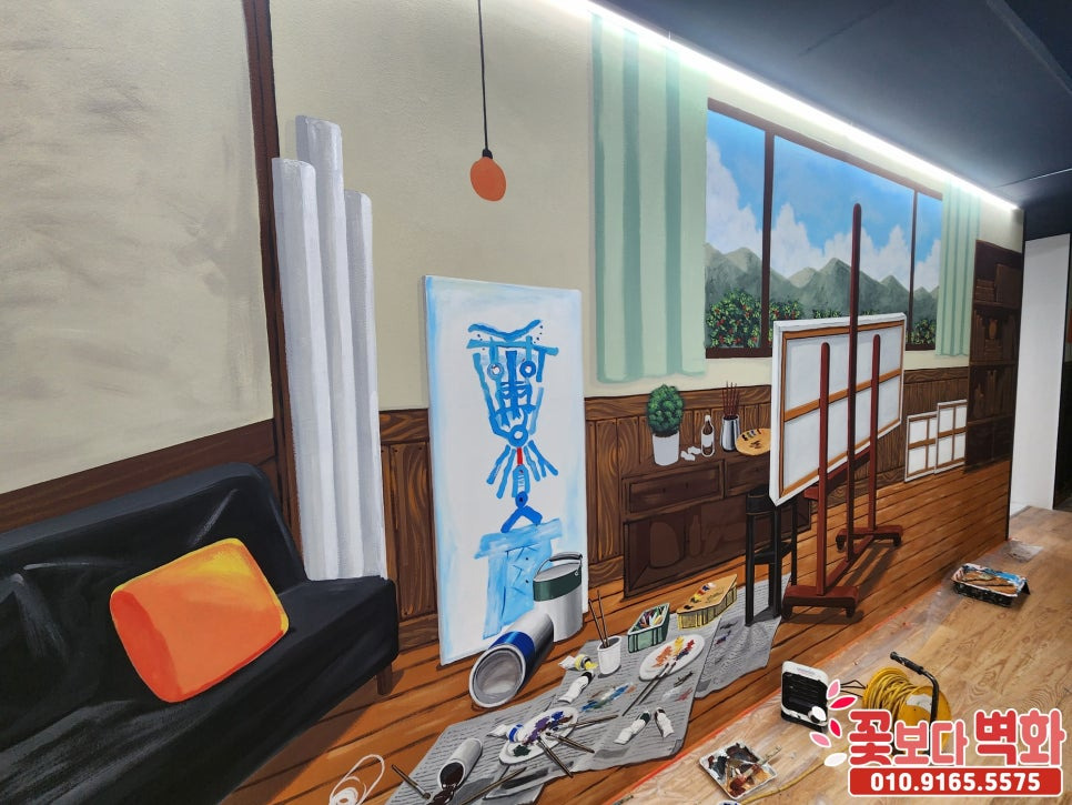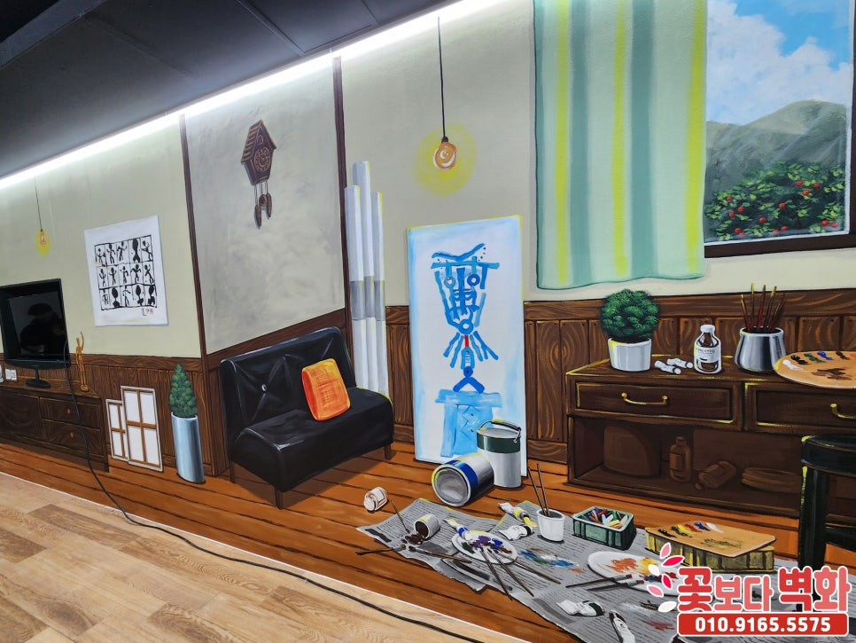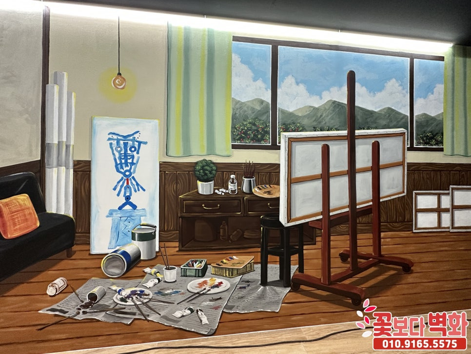 청송 남관생활 문화센터 남관화백의 작업실을 재현해 낸 벽화, 미술관벽화, 벽화시공, 꽃보다벽화, 트릭아트