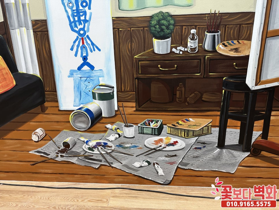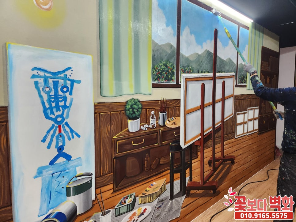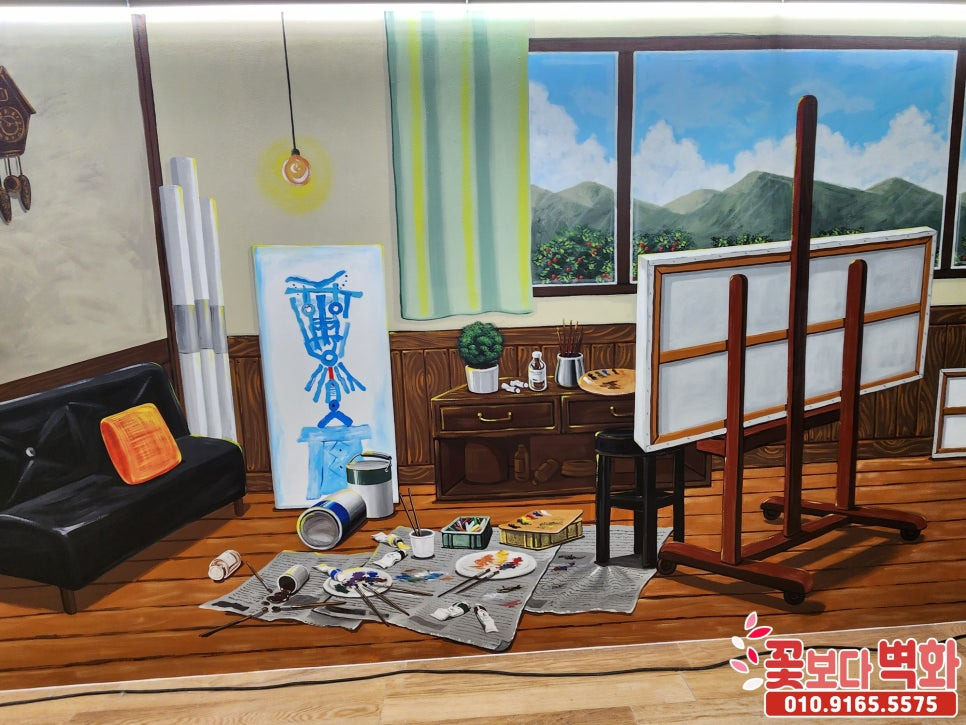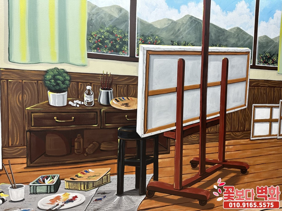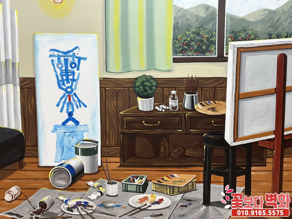 청송 남관생활 문화센터 남관화백의 작업실을 재현해 낸 벽화, 미술관벽화, 벽화시공, 꽃보다벽화, 트릭아트