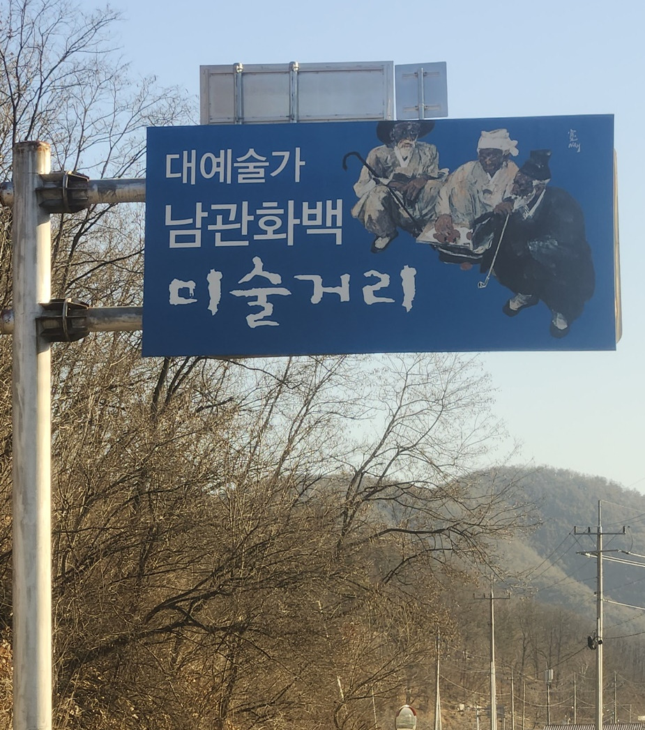 청송군 부남면에 들어서면 보이는 남관 화백 미술 거리 입간판!!