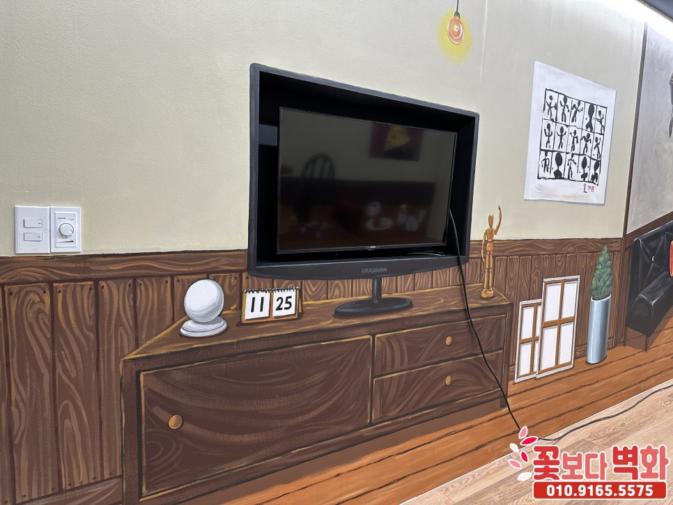 티비 장에 얹혀있는 착시 느낌의 벽화로 그려질 거예요 :)