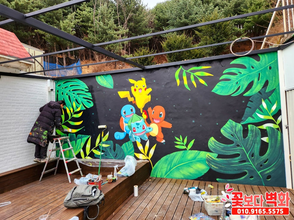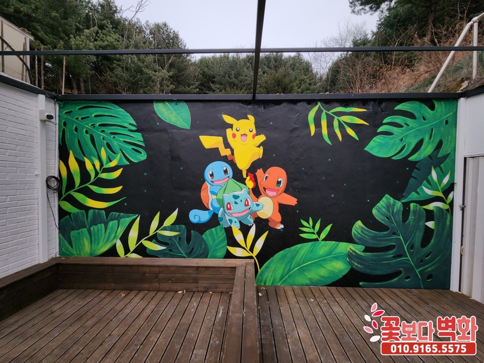 이 메인 벽면엔 아이들이 좋아할 포켓몬스터와 여기 풍경과 어울리는