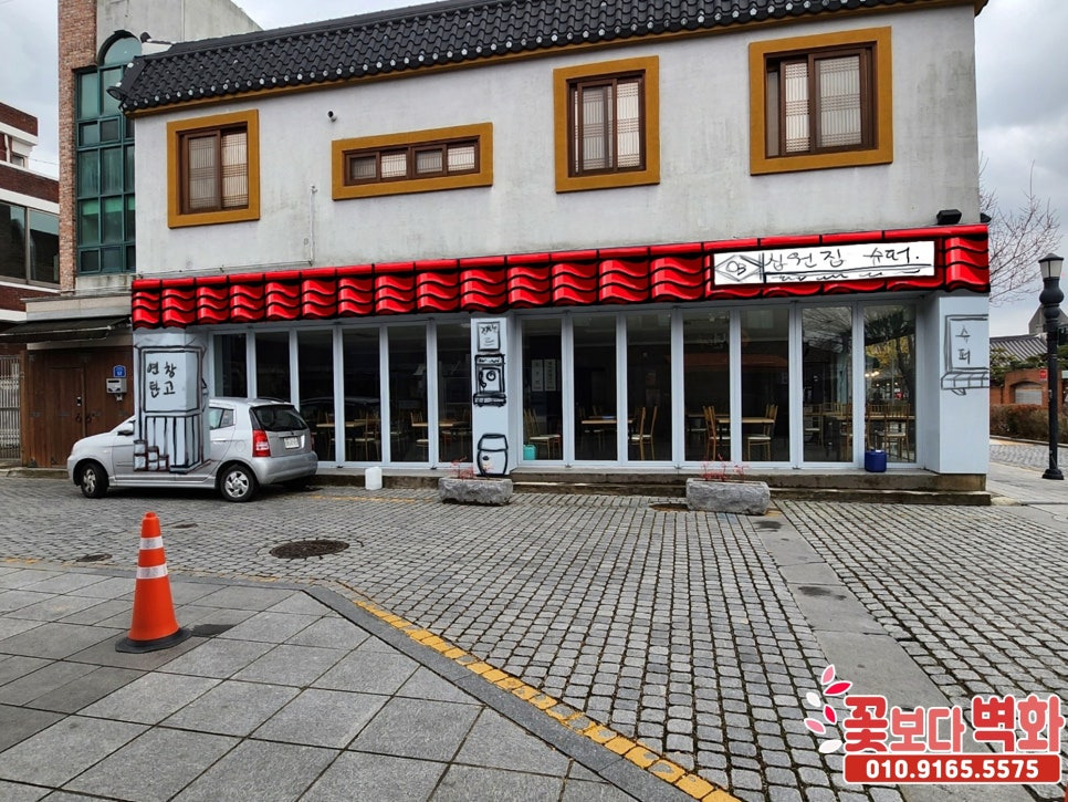 가게 간판 부분부터 외벽 기둥, 창문까지 알차게 작업하고 온 이번 벽화!