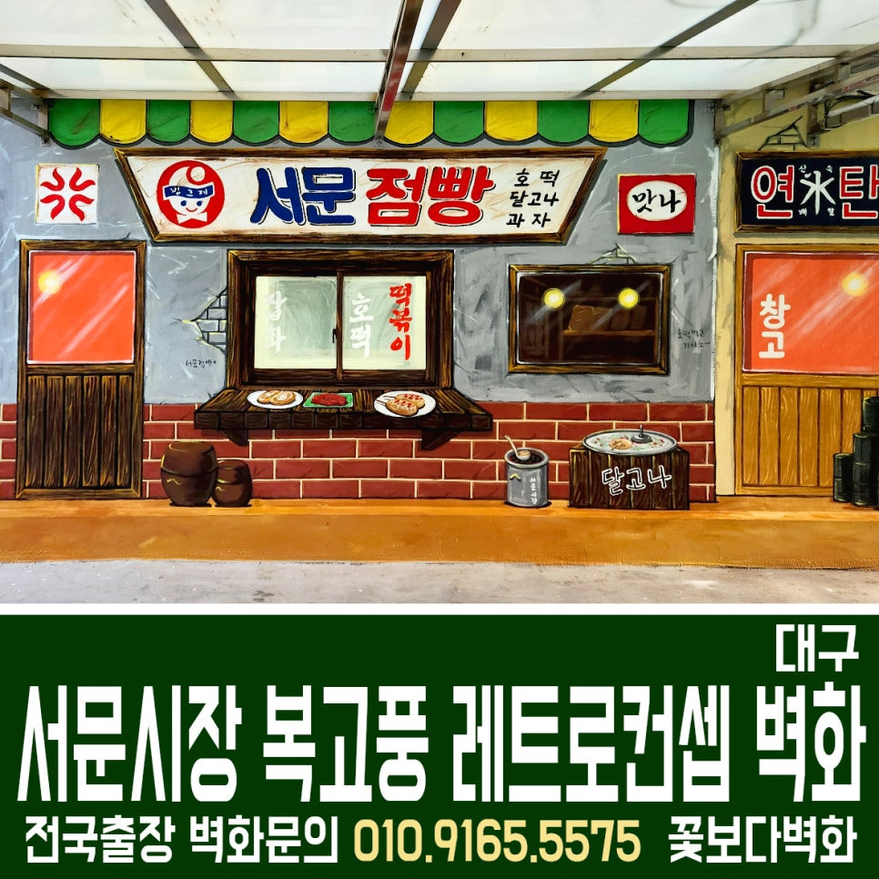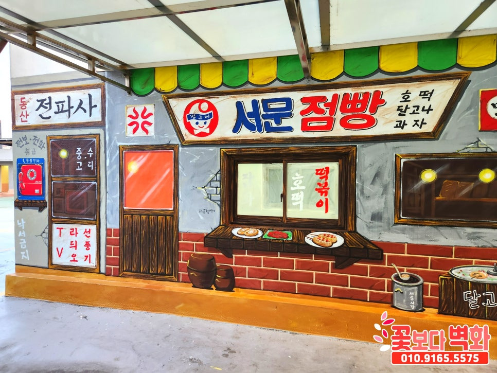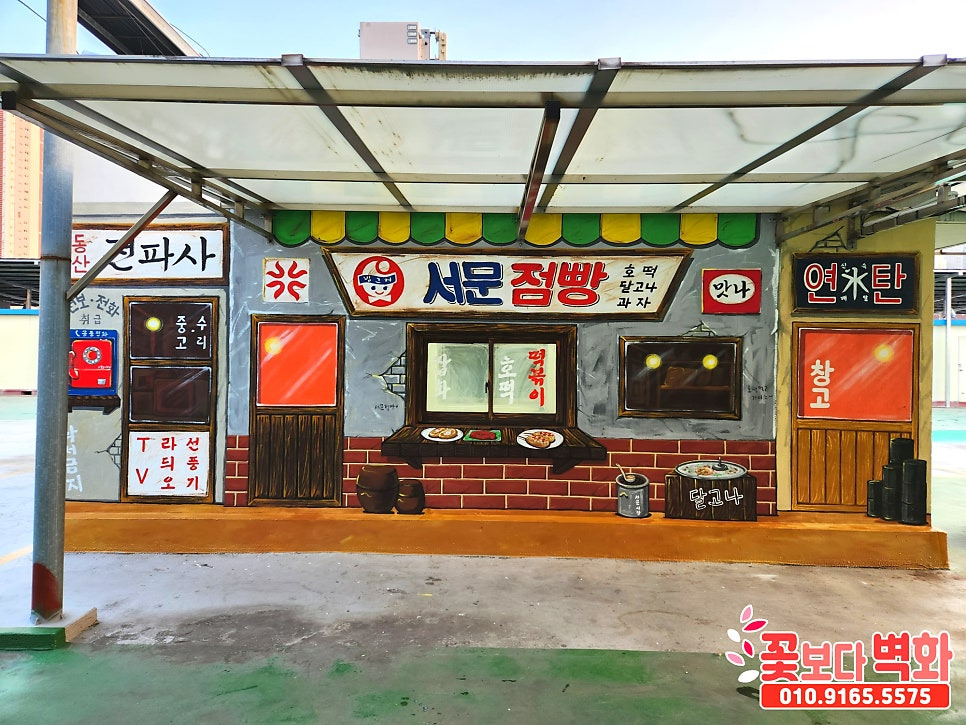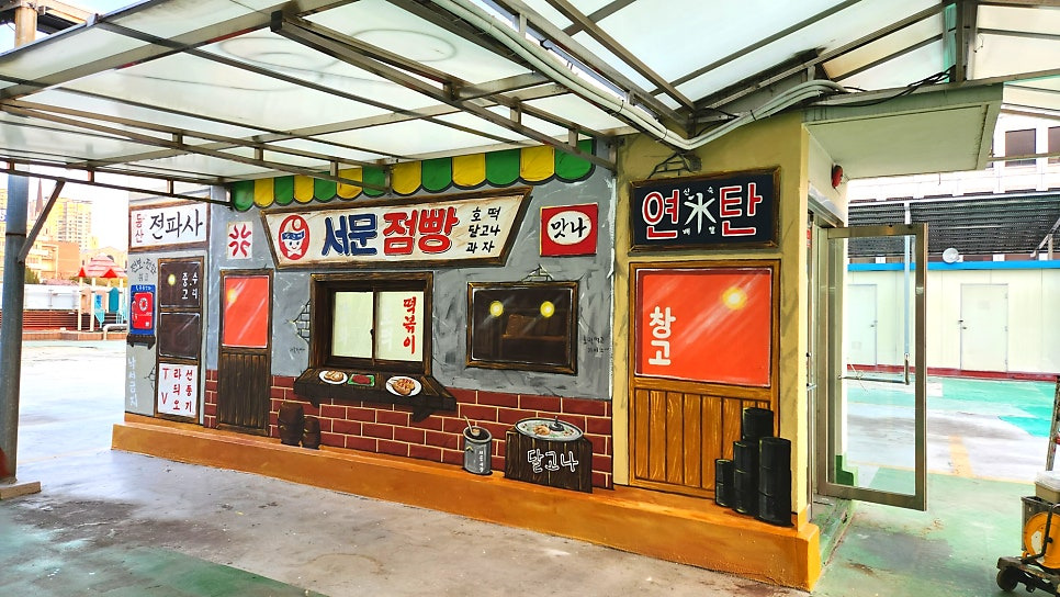 대구 서문시장 동산상가 옥상 공간에 그려진 레트로 복고풍 인테리어벽화, 옛날점빵, 7080, 옛날감성