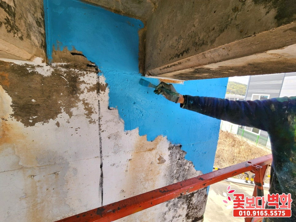 벽화작업 전 벽면을 깨끗하게 청소하는 중인데요 :)