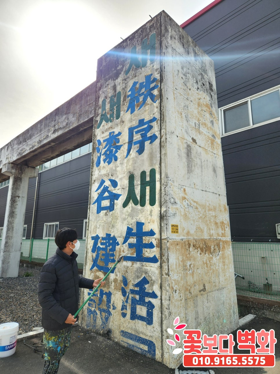 공장 입구까지 나와있는 농수로 기둥에 새 옷을 입혀 보겠습니다.