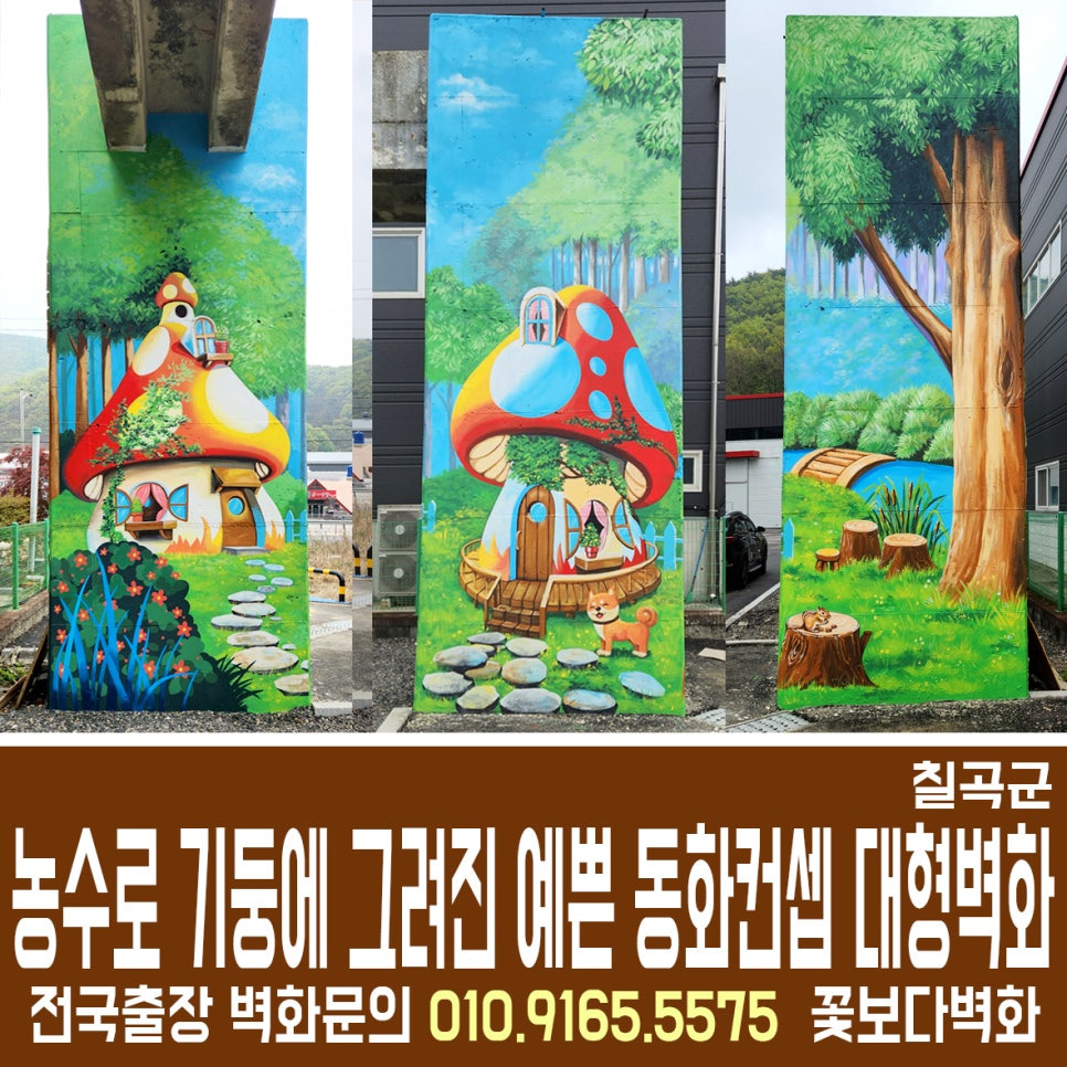 칠곡군 농수로 기둥에 그려진 동화컨셉의 예쁜 벽화, 마을벽화, 환경개선, 공장벽화