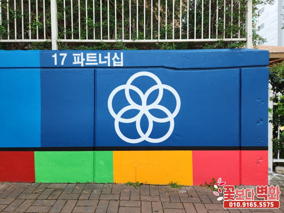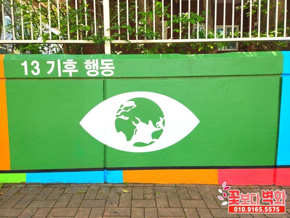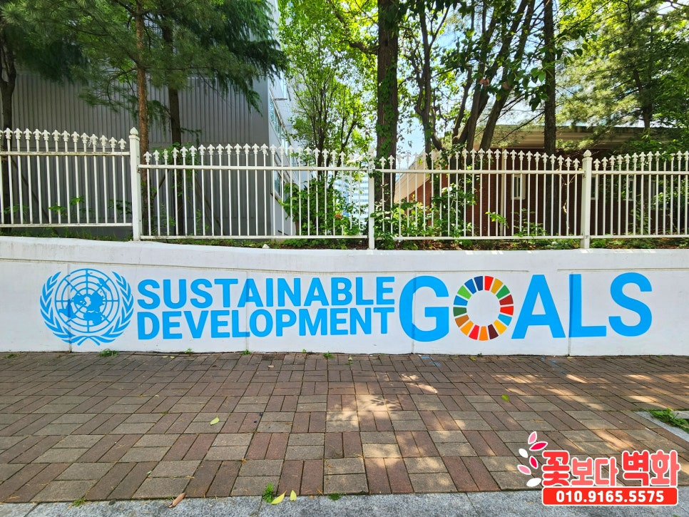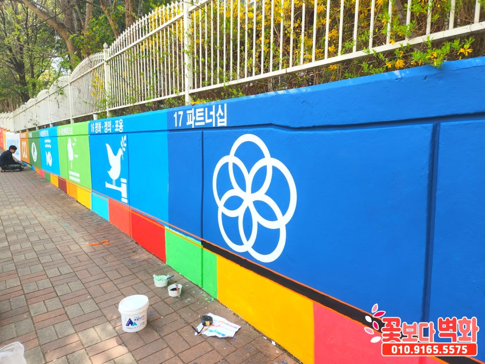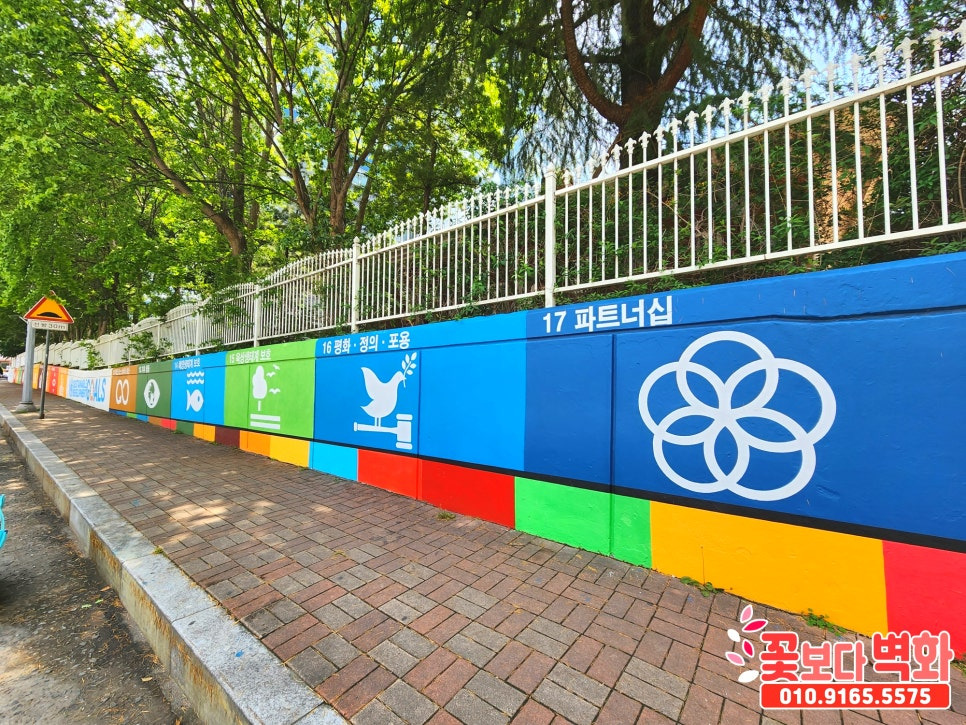 유엔이 선정한 지속가능발전목표 17가지를 담벼락에