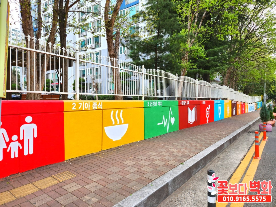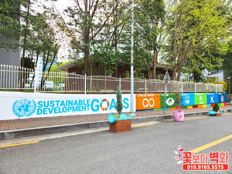 대구 수성구 아파트 담벼락에 그려진 유엔 지속가능발전목표 벽화작업, 관공서벽화, 마을환경 개선사업