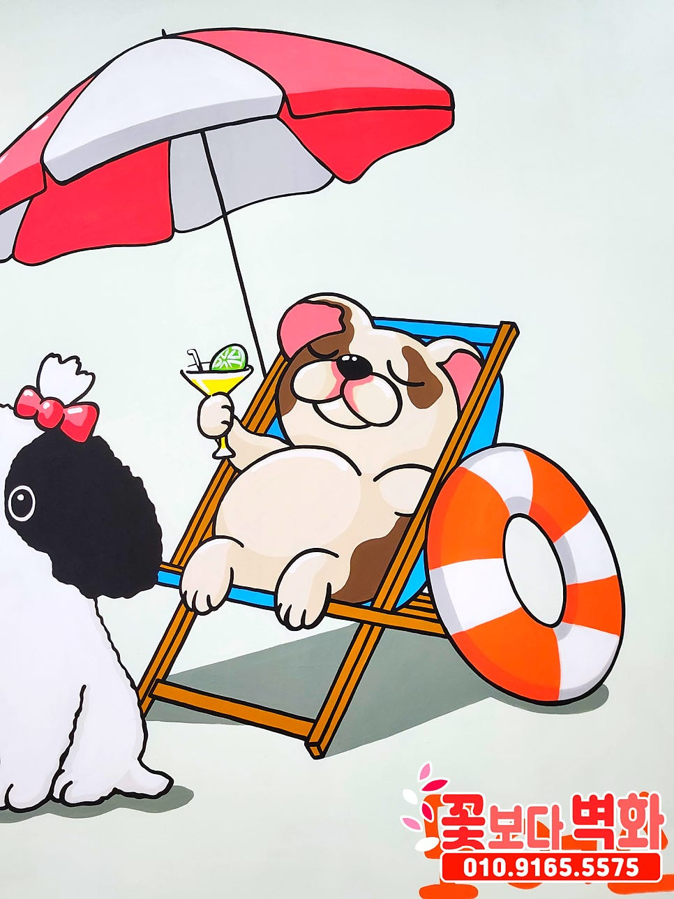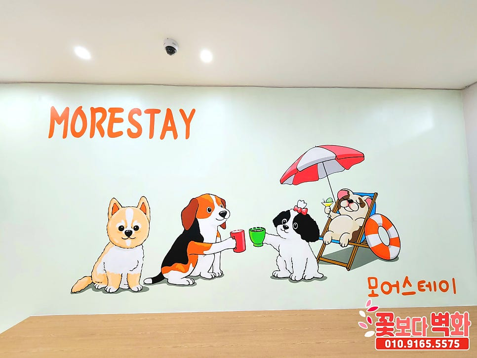 [인테리어벽화 전문 꽃보다벽화] 부산 모어스테이 애견카페에 귀여운 강아지 벽화가 생겼어요!