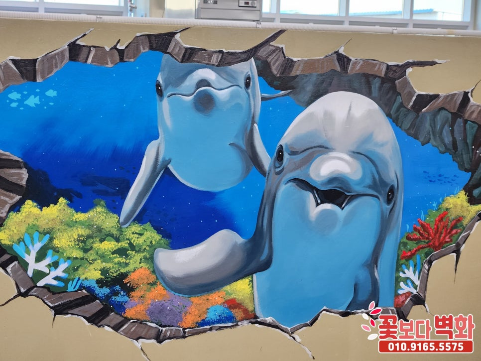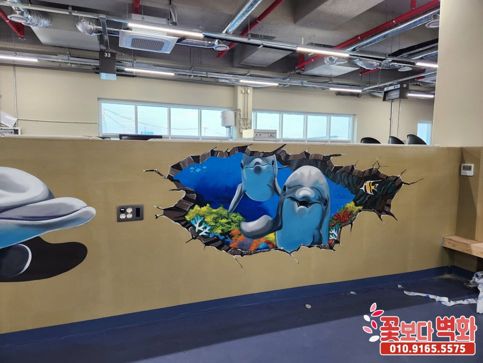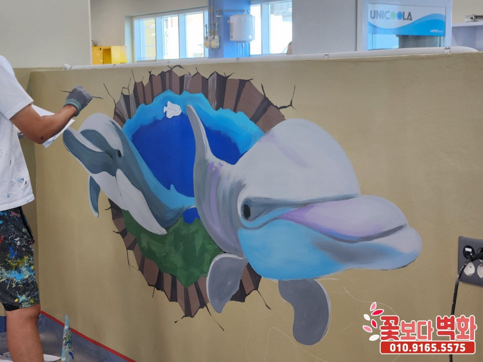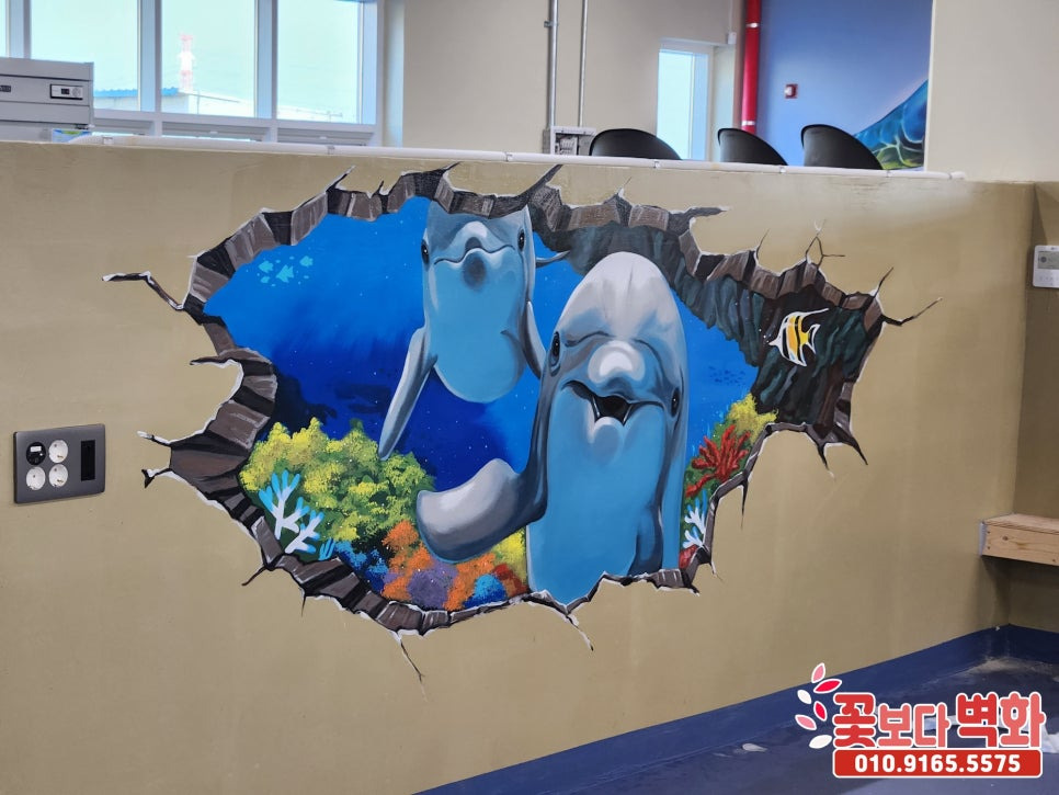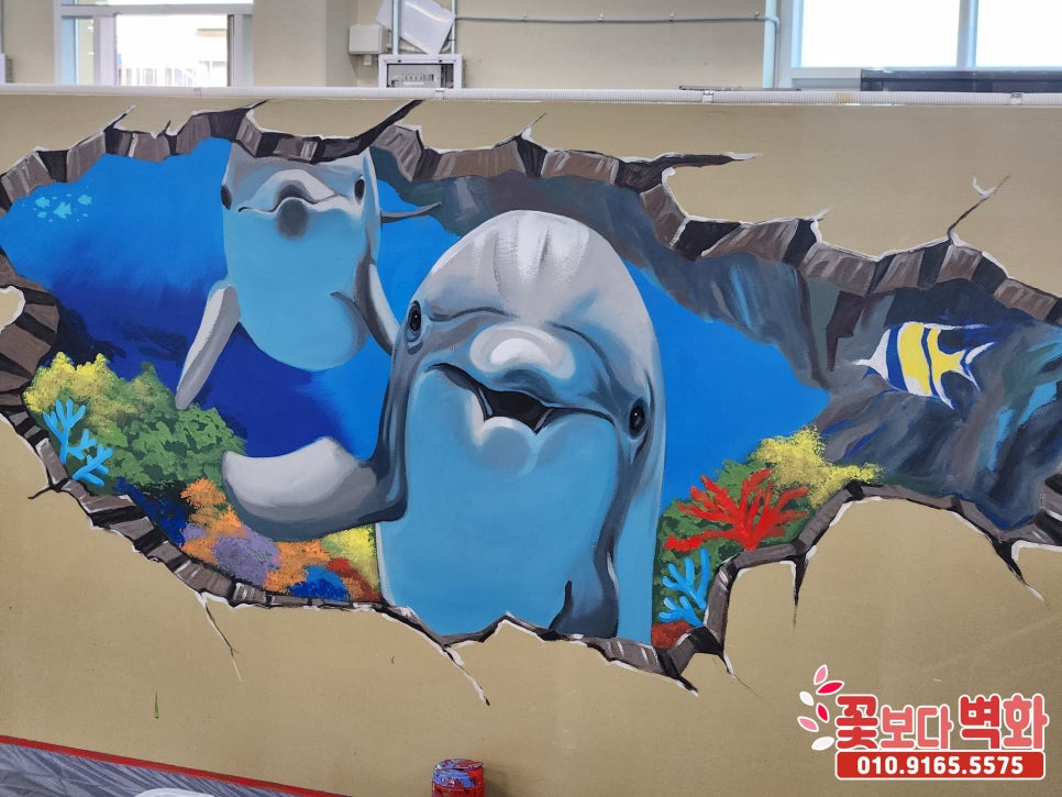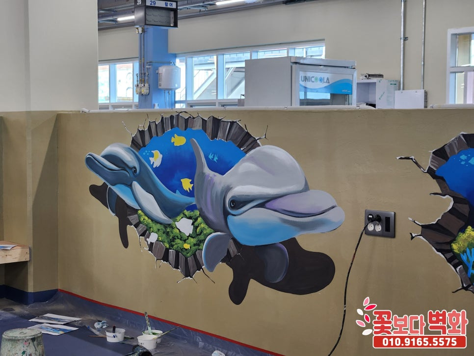 귀여운 돌고래 트릭아트 벽화로 꾸며진 이번 횟센터 벽화