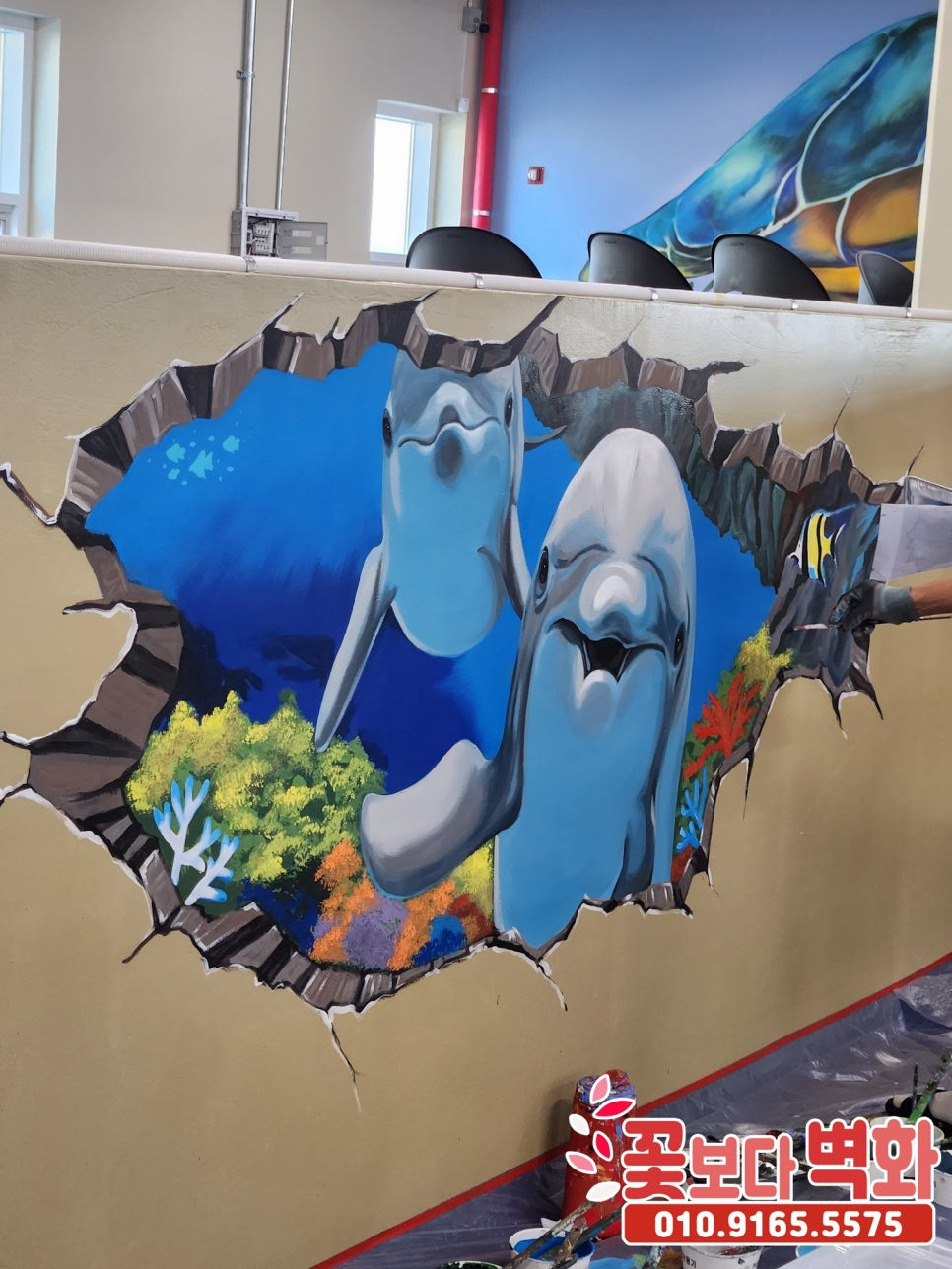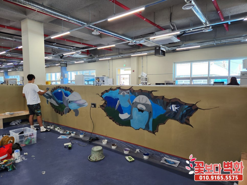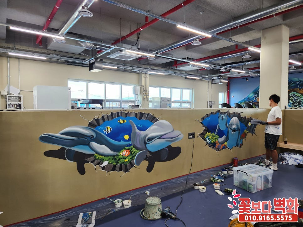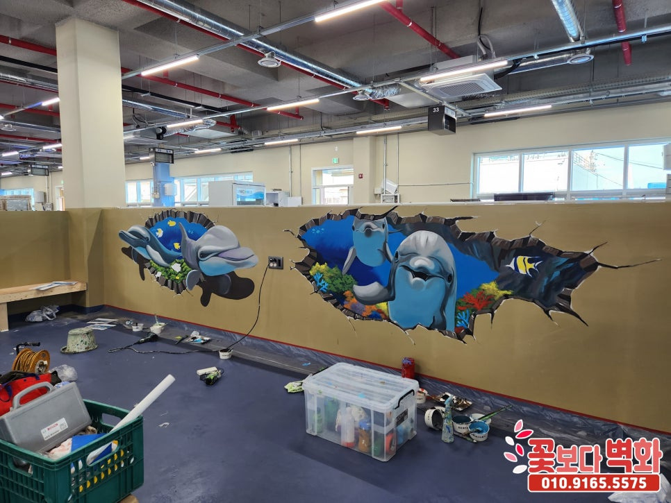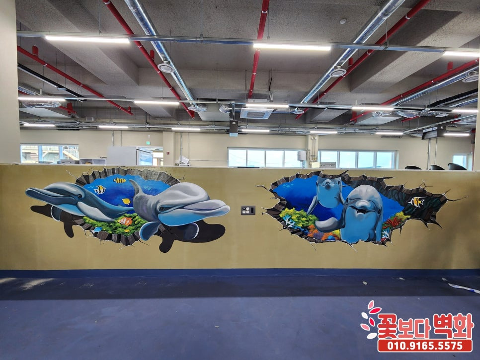귀여운 돌고래 트릭아트 벽화로 꾸며진 이번 횟센터 벽화