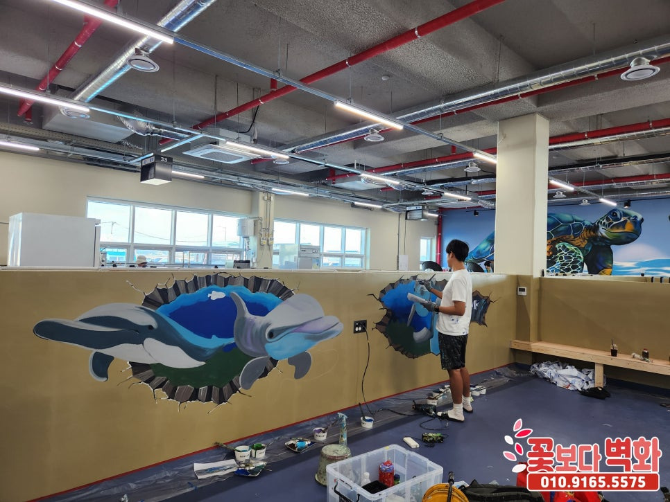 인천 영흥수협회센터 보람이네횟집 돌고래가 있는 트릭아트 인테리어벽화, 대부도벽화