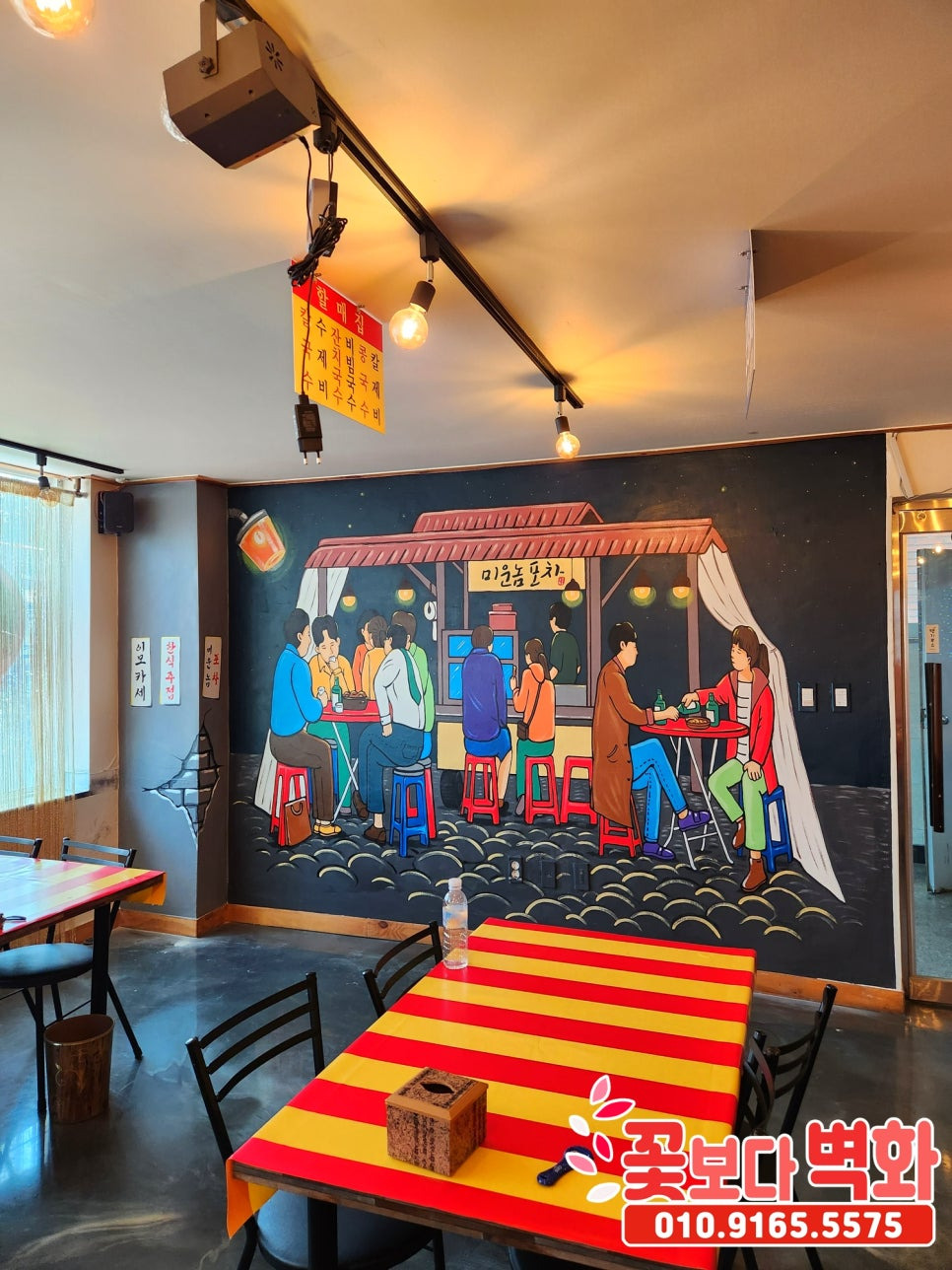 포장마차 컨셉의 벽화로 재미와 분위기를 다 잡은 미운놈 포차 인테리어벽화