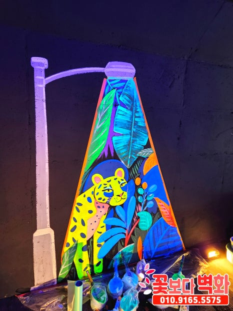 저희 꽃보다벽화만의 장점인 형광, 야광 벽화를 야외에 그려보는 건 처음인데요