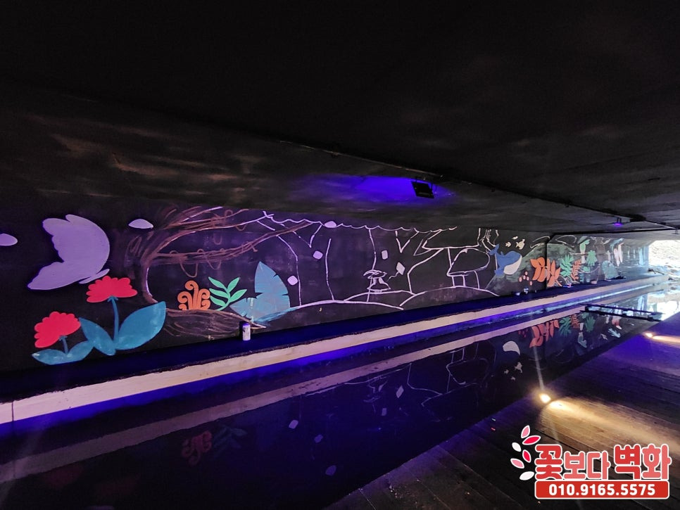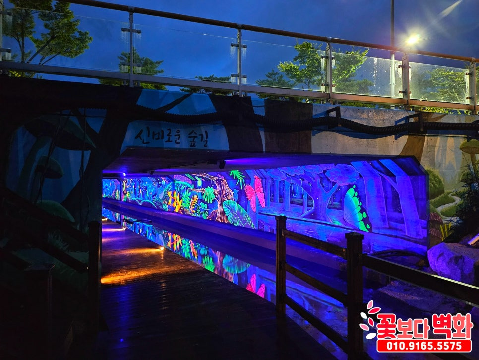 경북도청 신도시 실개천 산책로에 그려진 화려한 형광벽화, 야광벽화