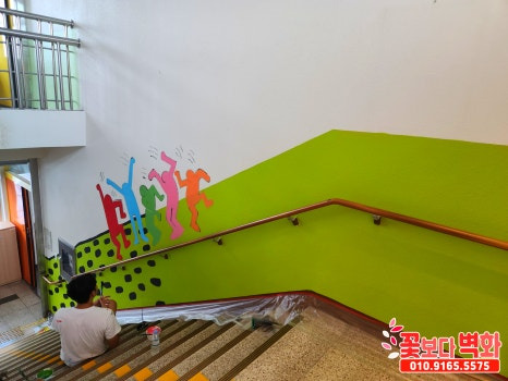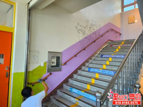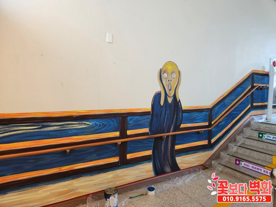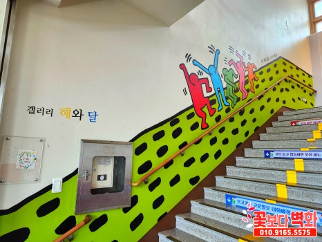 이렇게 총 6곳의 계단 벽면과 2곳의 교실 끝 벽면에 벽화가 그려졌는데요 :)