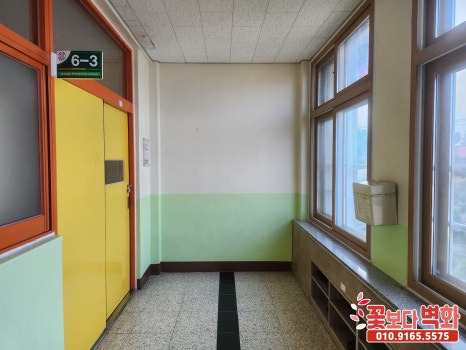 먼저 교실 끝 복도 벽면 포인트로 그려진