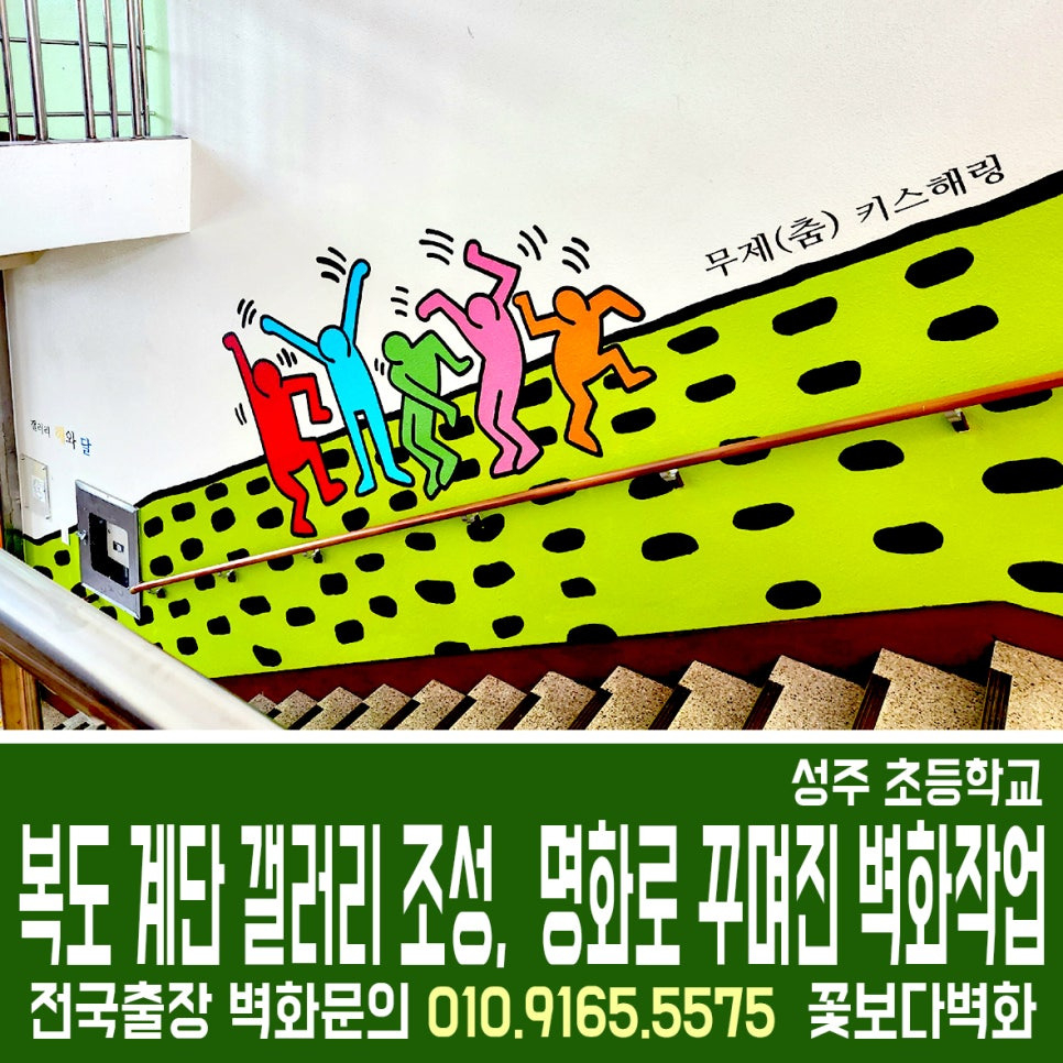 성주 초등학교 복도, 계단에 멋진 명화로 꾸며진 학교벽화