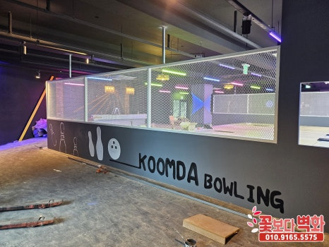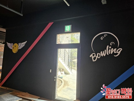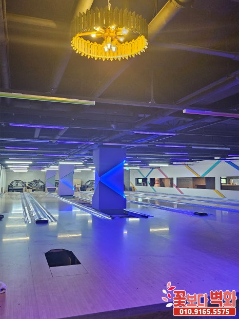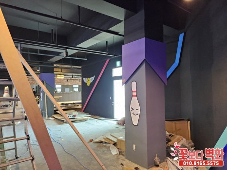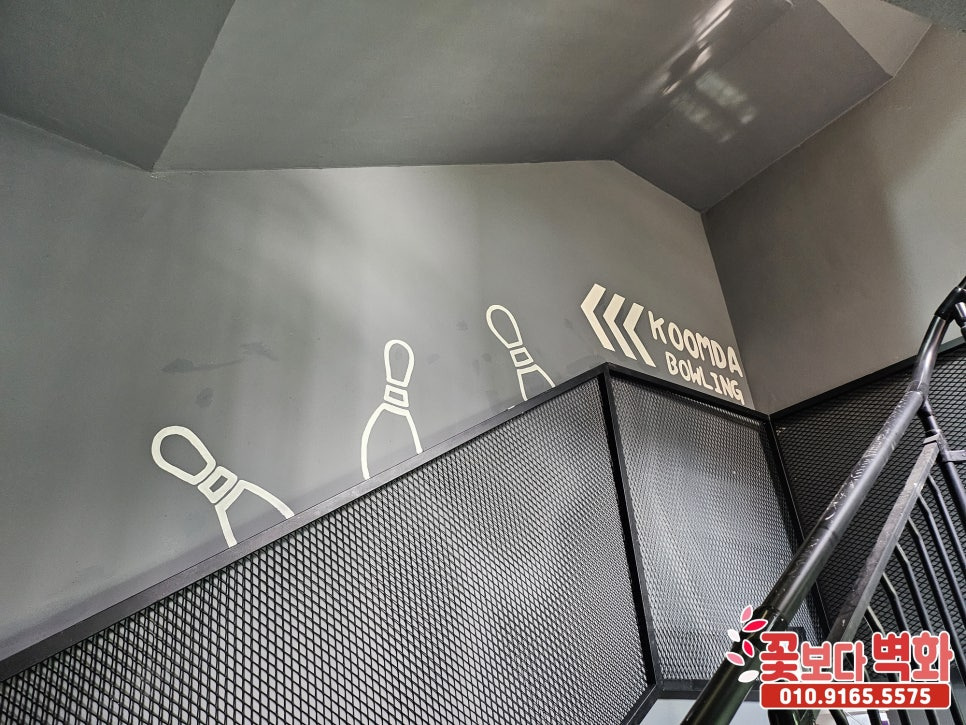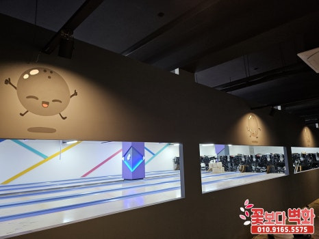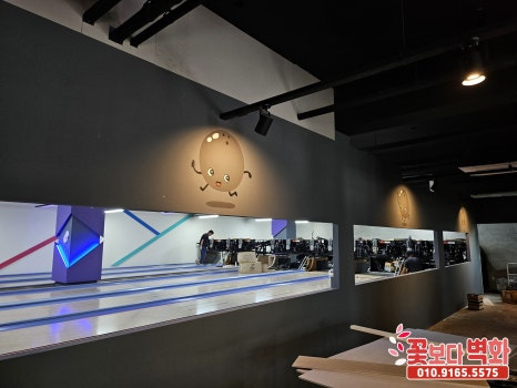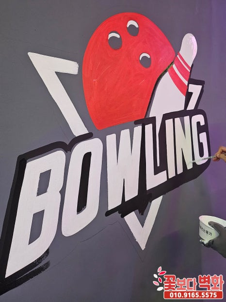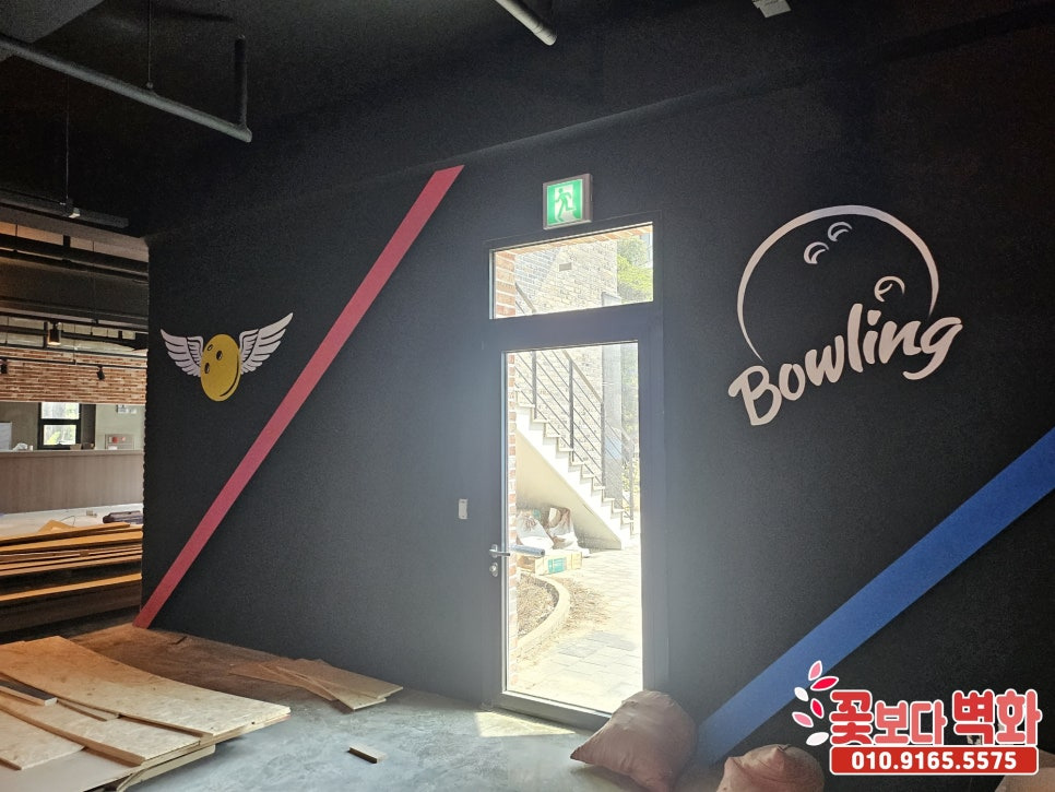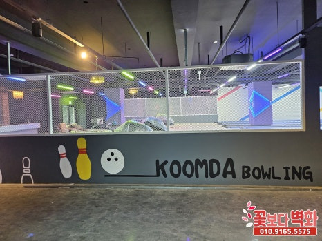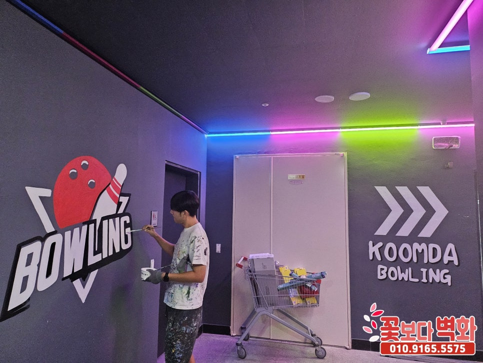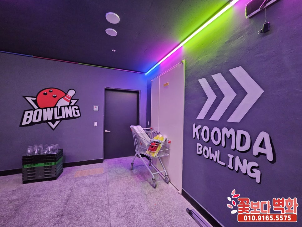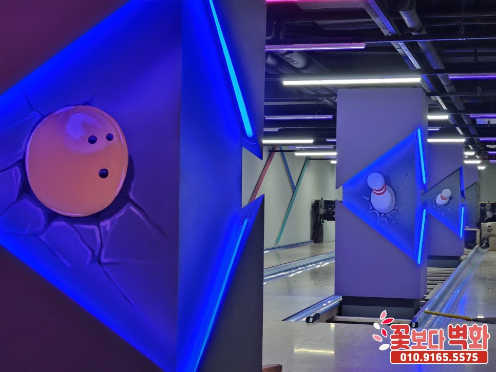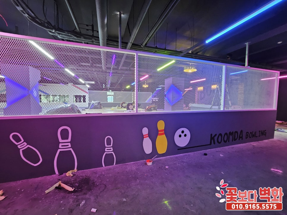 볼링장의 다이내믹한 분위기와 서바이벌 게임장의 박진감을 생생하게 표현한 형광벽화로,