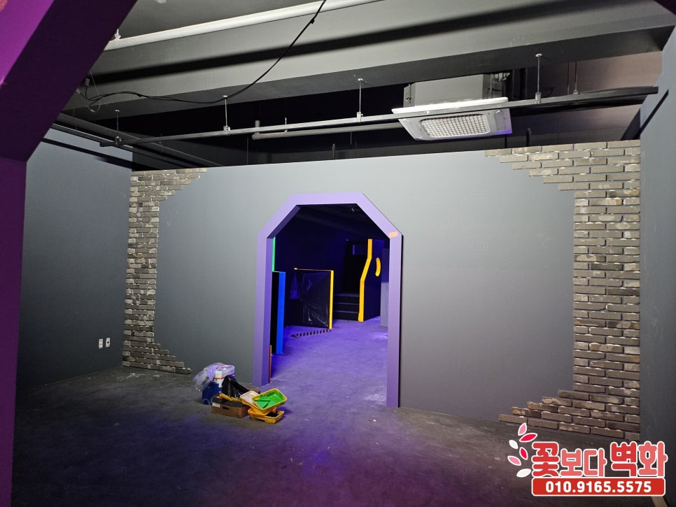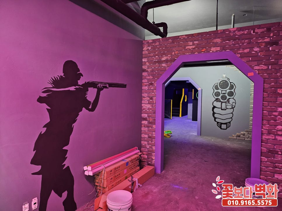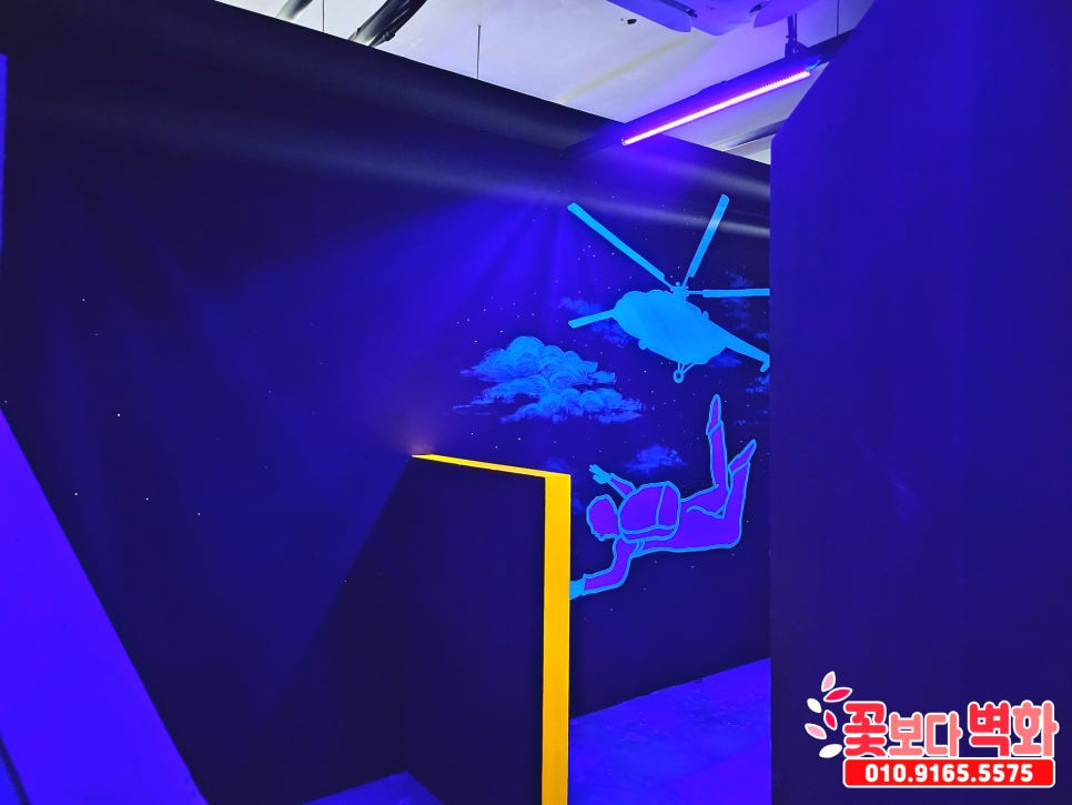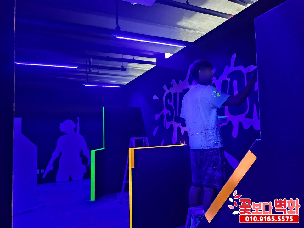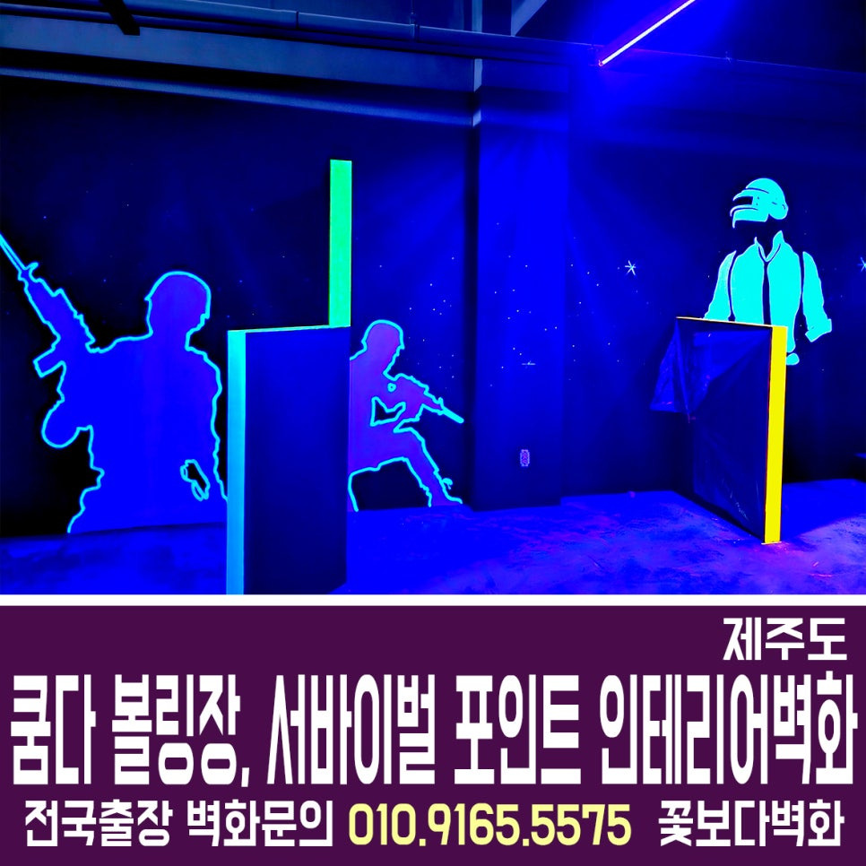 제주도 중문 쿰다볼링, 서바이벌 게임장 내부에 인테리어벽화, 루미나이트 형광벽화