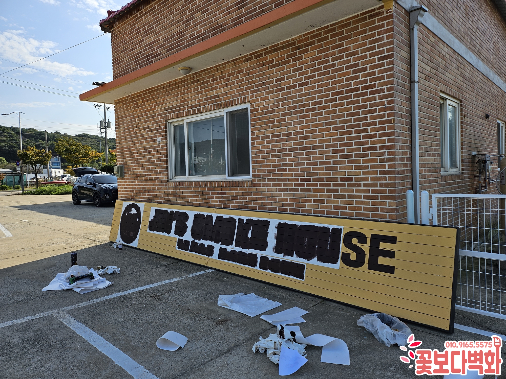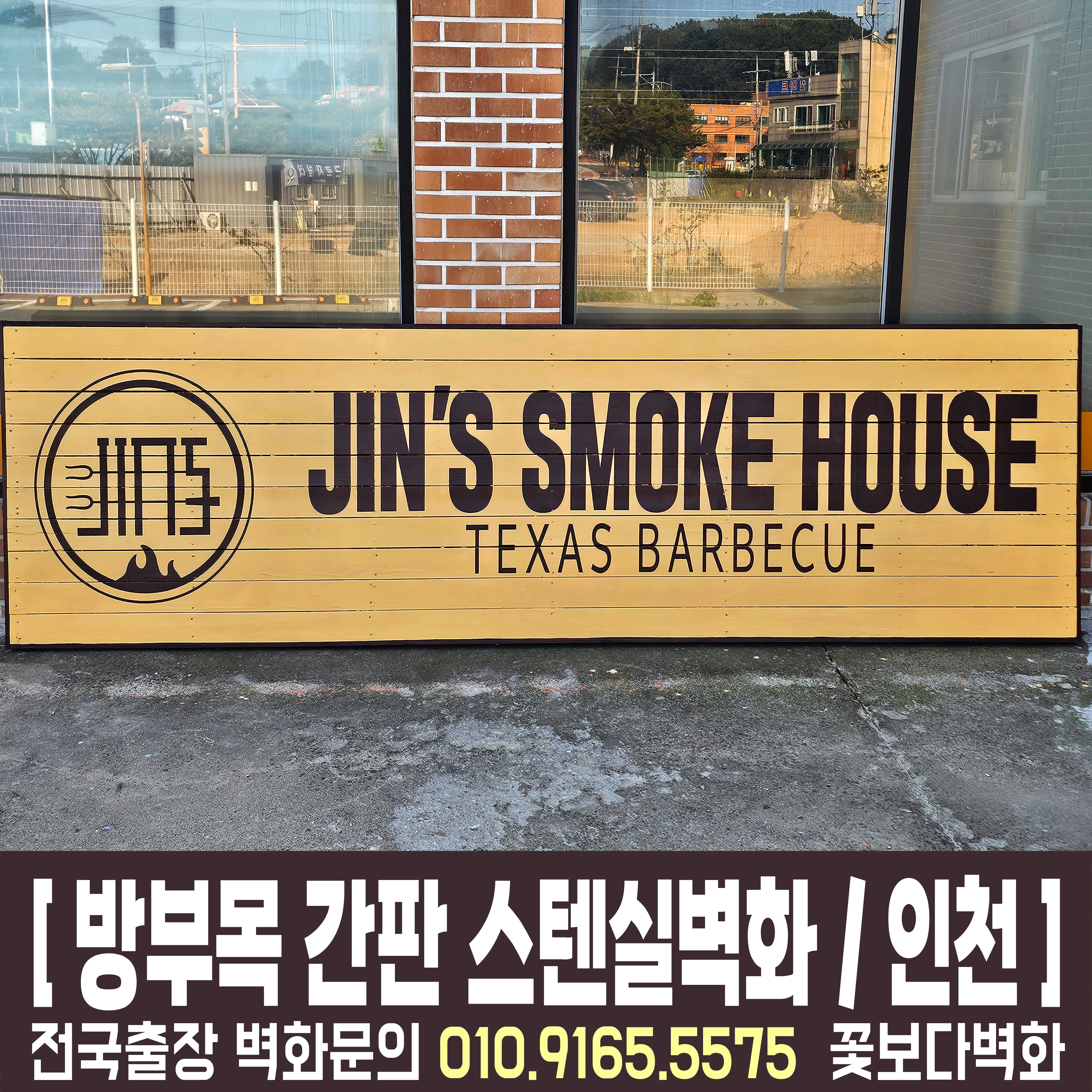 인천 영종도 방부목 간판에 그려진 감성 가득 스텐실 로고 벽화작업!
