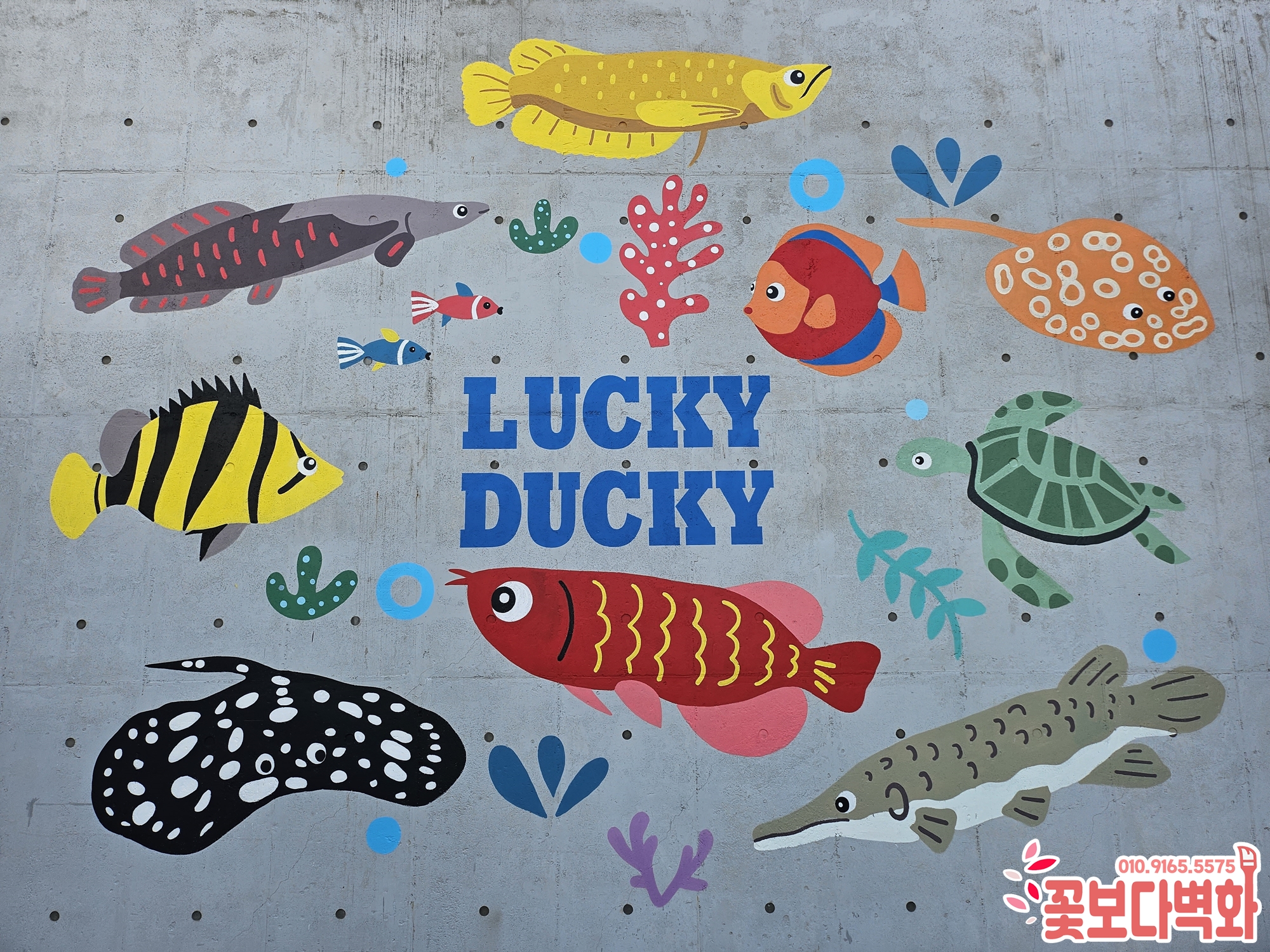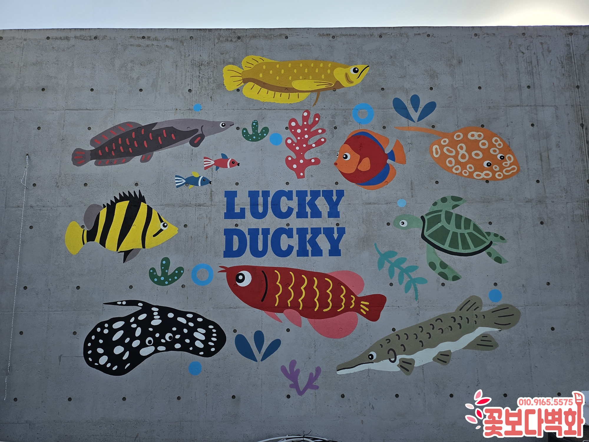 왜관 러키더키 아쿠아리움 외벽 물로기 캐릭터벽화, 수족관 인테리어, 대형벽화
