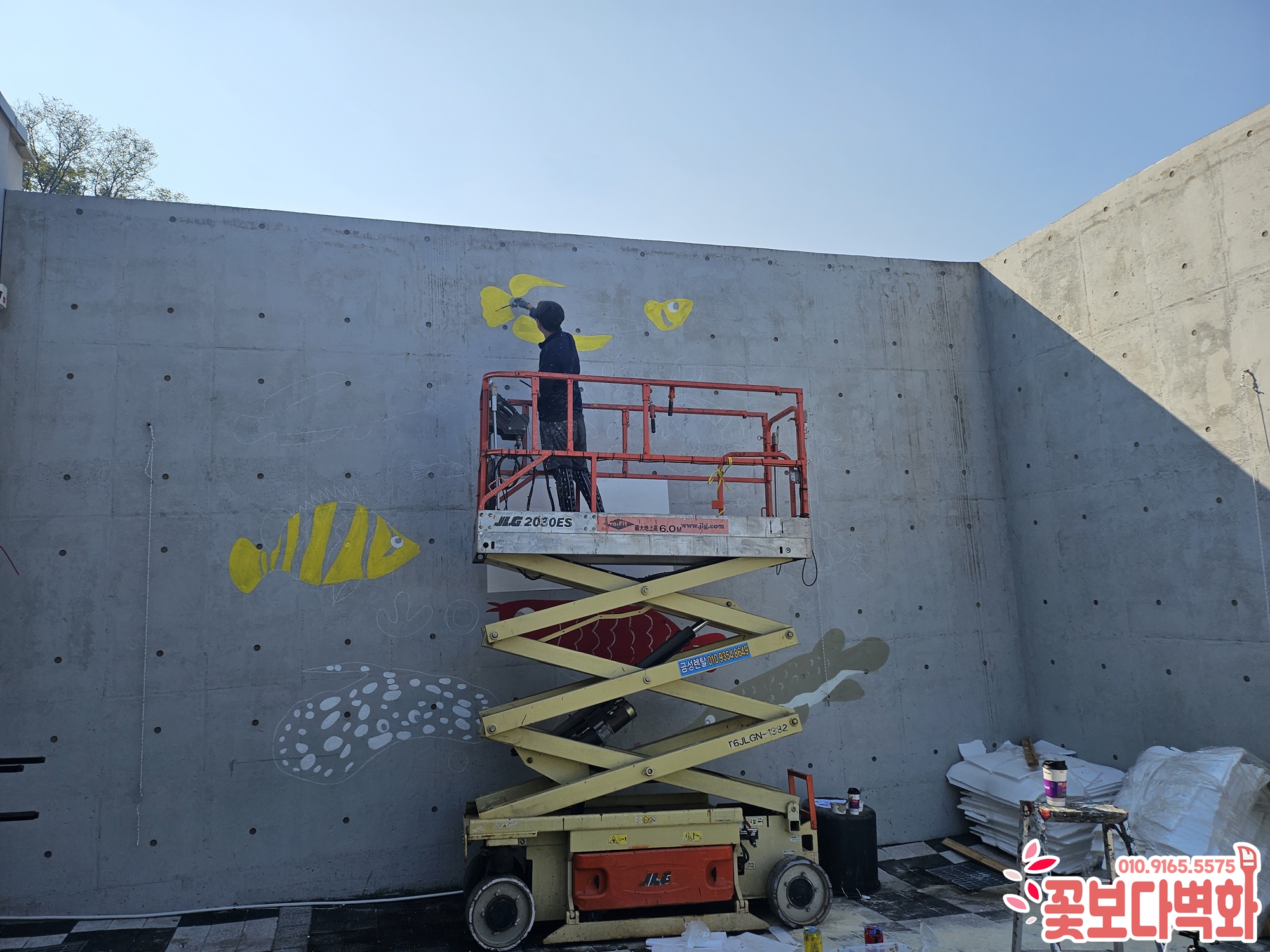 이번 벽화는 밝고 생동감 있는 물고기 캐릭터들이 가득해 아이들과 가족 방문객들에게 특별한 포토존 공간을 제공합니다.