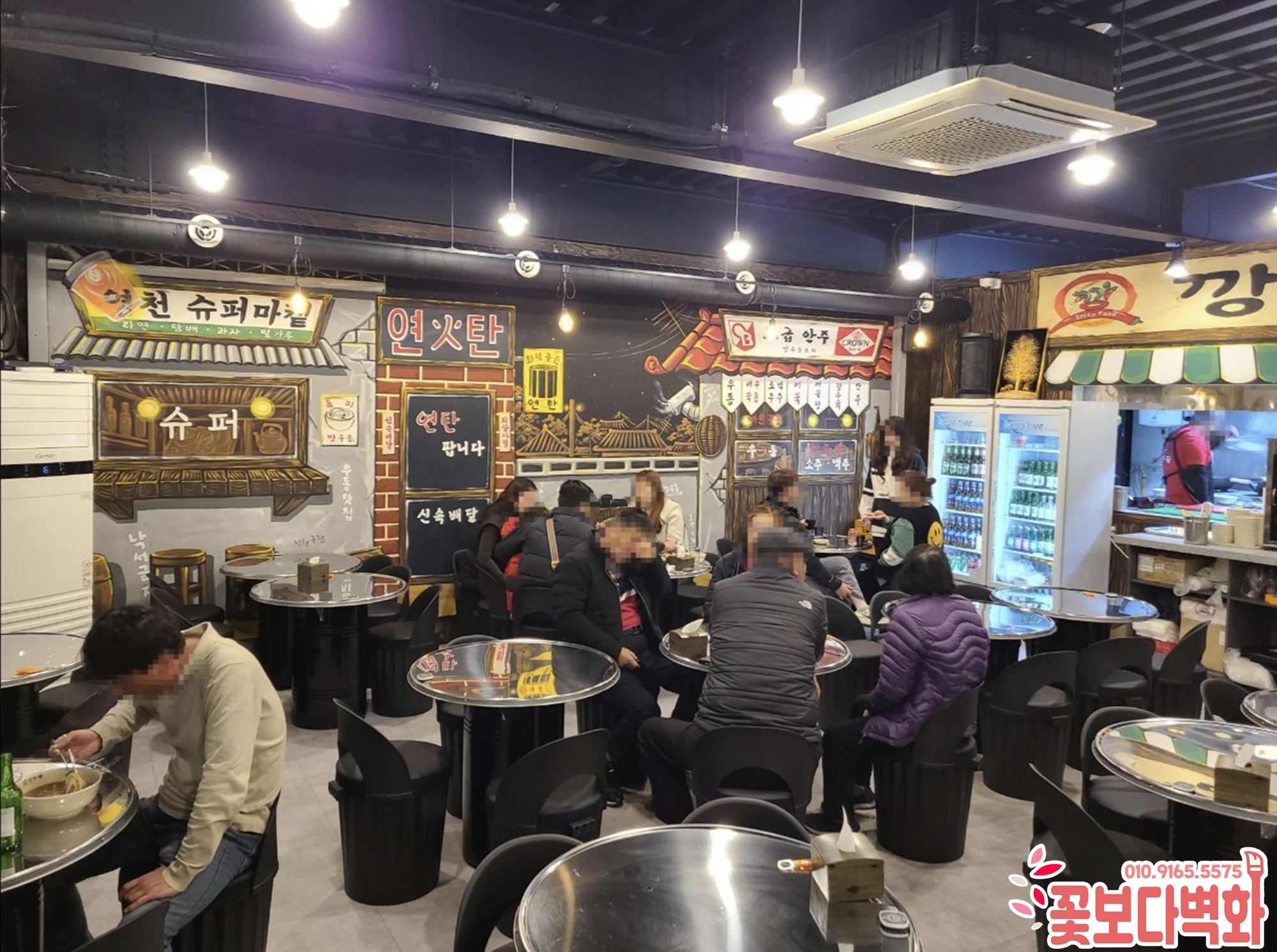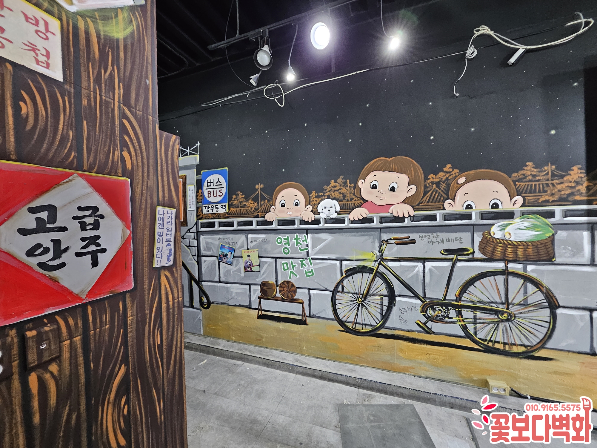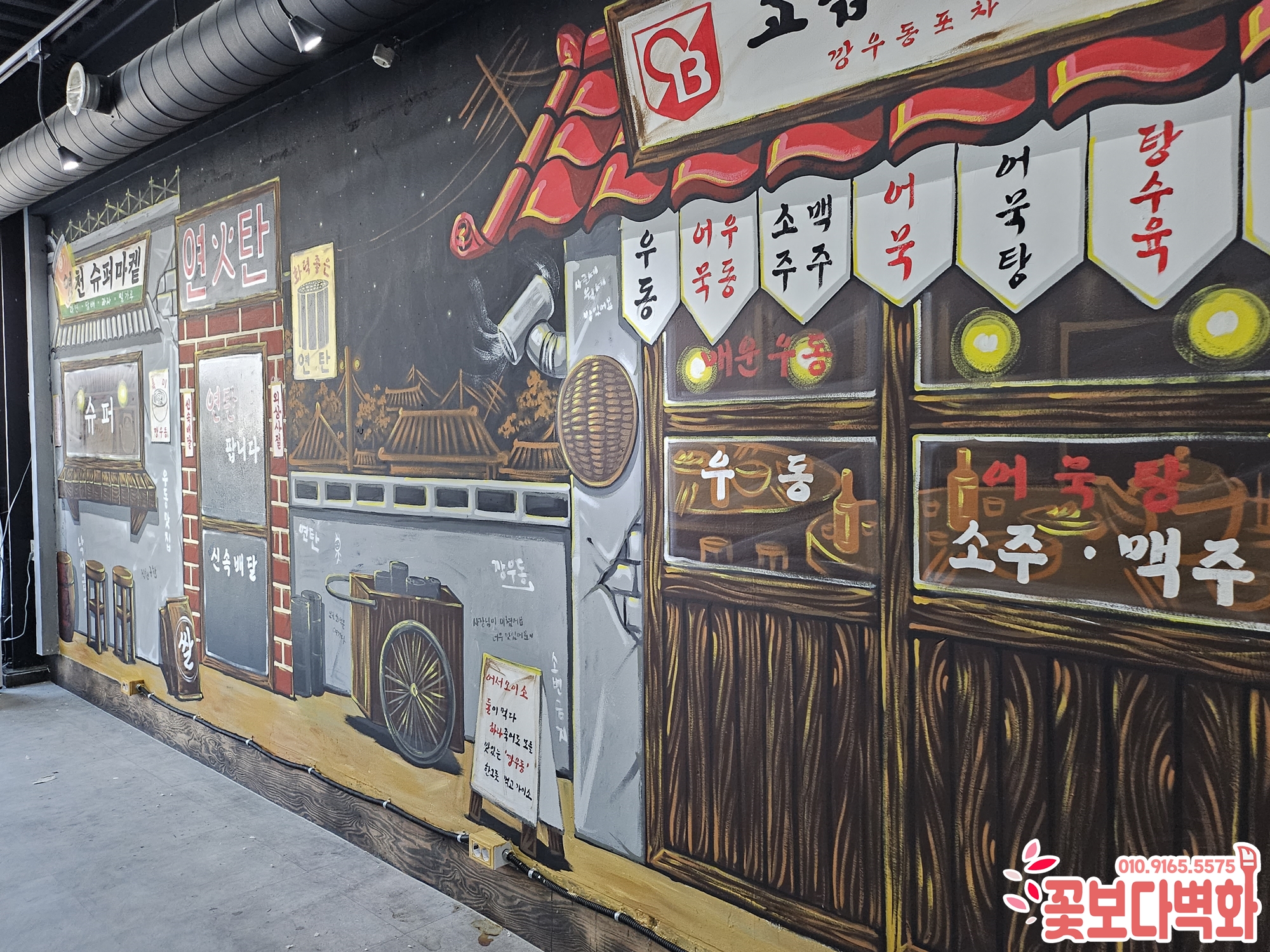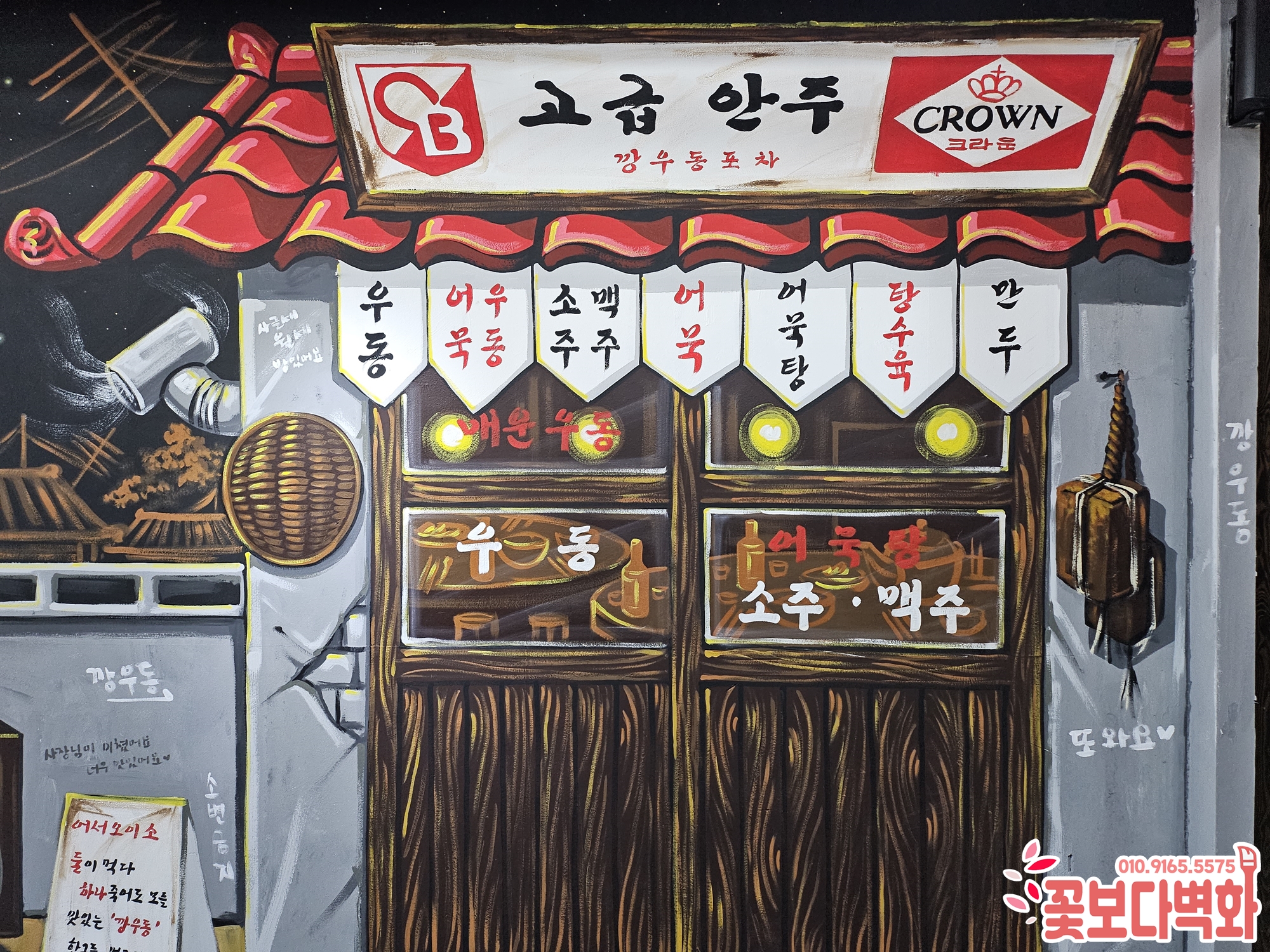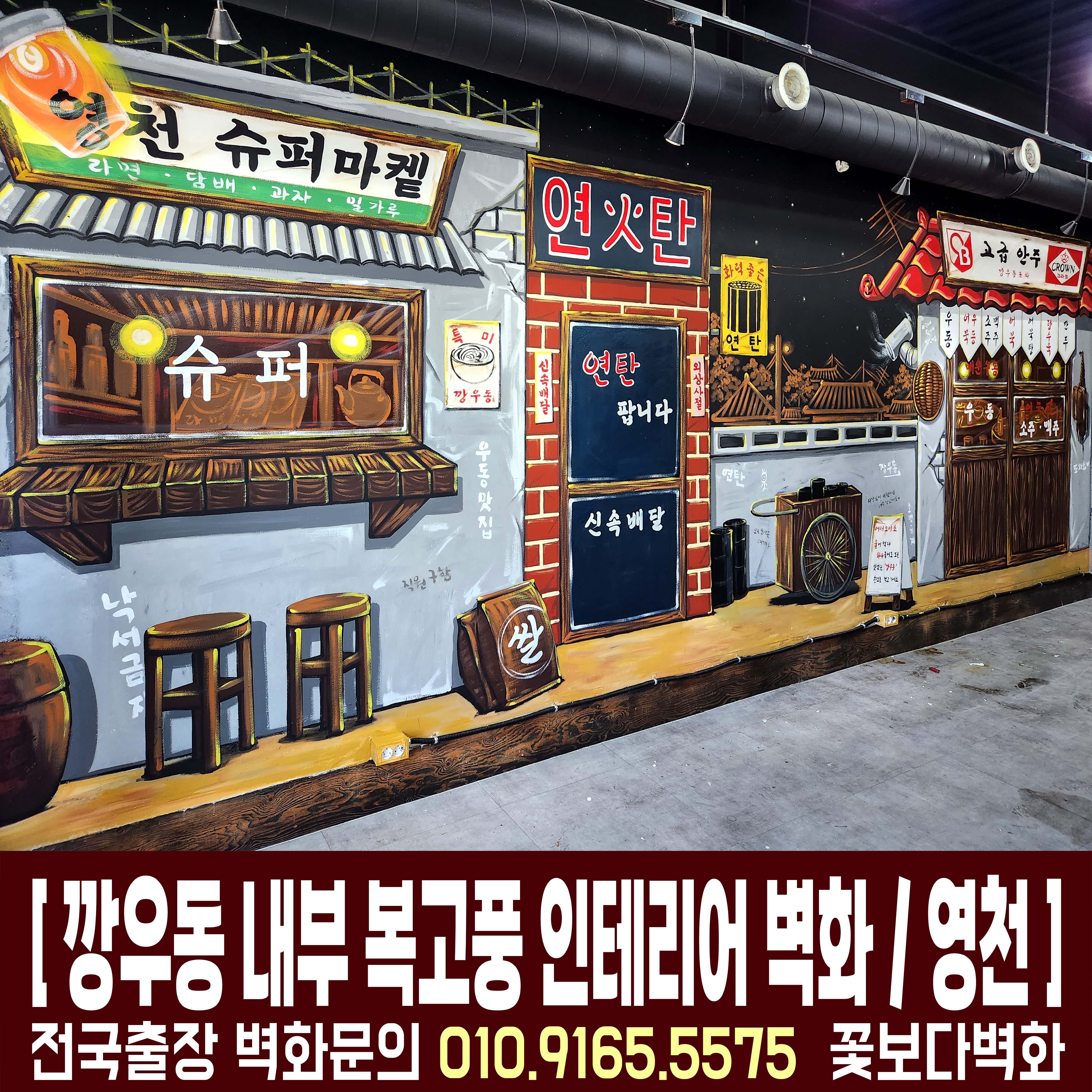 영천 깡우동 포차 레트로벽화 시공|식당인테리어 복고인테리어 감성가득한 포차공간